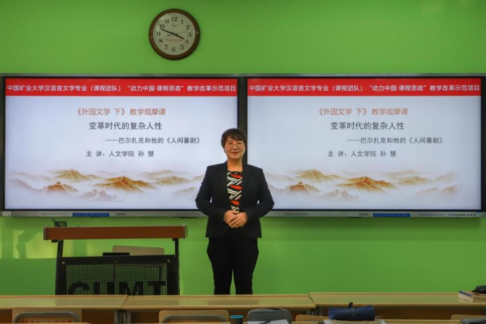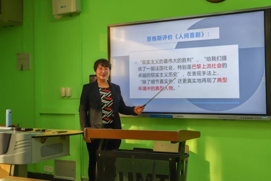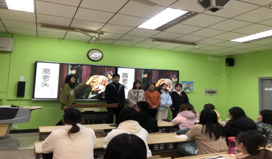 为充分发挥教师队伍“主力军”、课程建设“主战场”、课堂教学“主渠道”,搭建课程思政教学经验交流平台,创新线上线下混合式教学模式,2021年12月17日,我校汉语文学专业课程教学团队负责人孙慧老师在博4B203举办了第二次教学观摩课,在校级课程团队“动力中国·课程思政”教学研究示范项目已有建设的基础上,融合课程团队建设的新思路,巧妙挖掘思政元素,构建高效的课程思政课堂。该观摩课主讲的是首批国家级一流本科课程《外国文学 下》的教学内容,以马克思主义文艺批评观、习近平文艺思想为指导,依托“马工教材”,课程设计突出前沿性和科学性,通过解析法国批判现实主义大师巴尔扎克小说《人间喜剧》中的《高老头》,以问题导入教学,通过启发式、合作探究、体验式等多种教学方法,用话剧演出形式演绎文学作品,引导学生提升认知美、感受美、体验美、发现美,知情意行合一。学生通过沉浸式学习体验,生动形象感知文学之美,取得较为显著的教学效果,同时也充分展示课程思政教学团队教改项目建设的成果,供老师们交流、学习和借鉴。