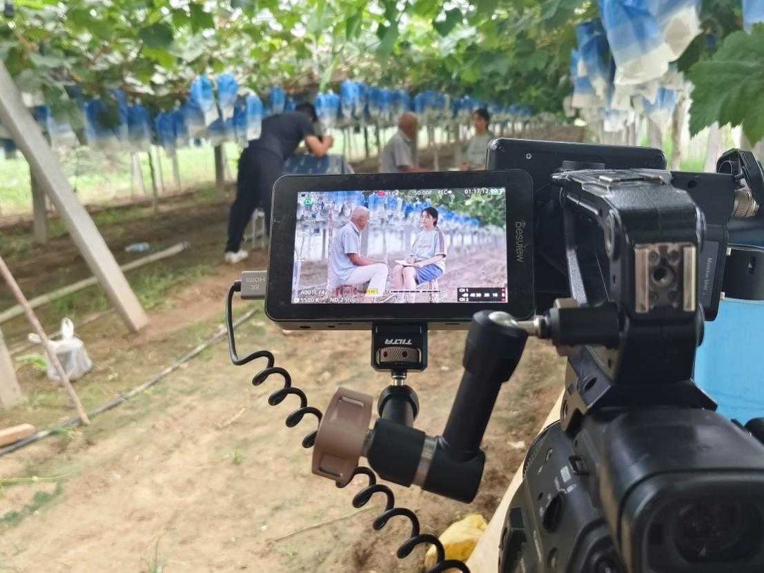 图为实践团成员(右一)参与丁里镇政府红色旅游宣传片拍摄的画面