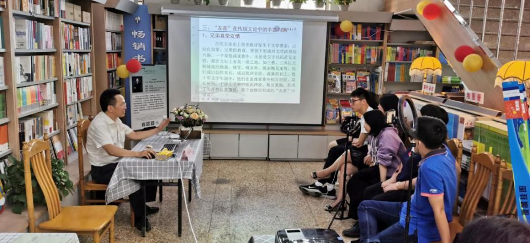 中文系邓心强副教授携新作《中国传统文论与核心价值观的创造性转化及发展研究》(中国书籍出版社2020年出版),做客新华书店徐州和平路店,作题为“‘友善’价值观在传统文论中的丰富内涵”的学术讲座。此次讲座由中文系主任朱云霞副教授主持,星睿SYStarlive直播刘子峰老师做全程线上支持。