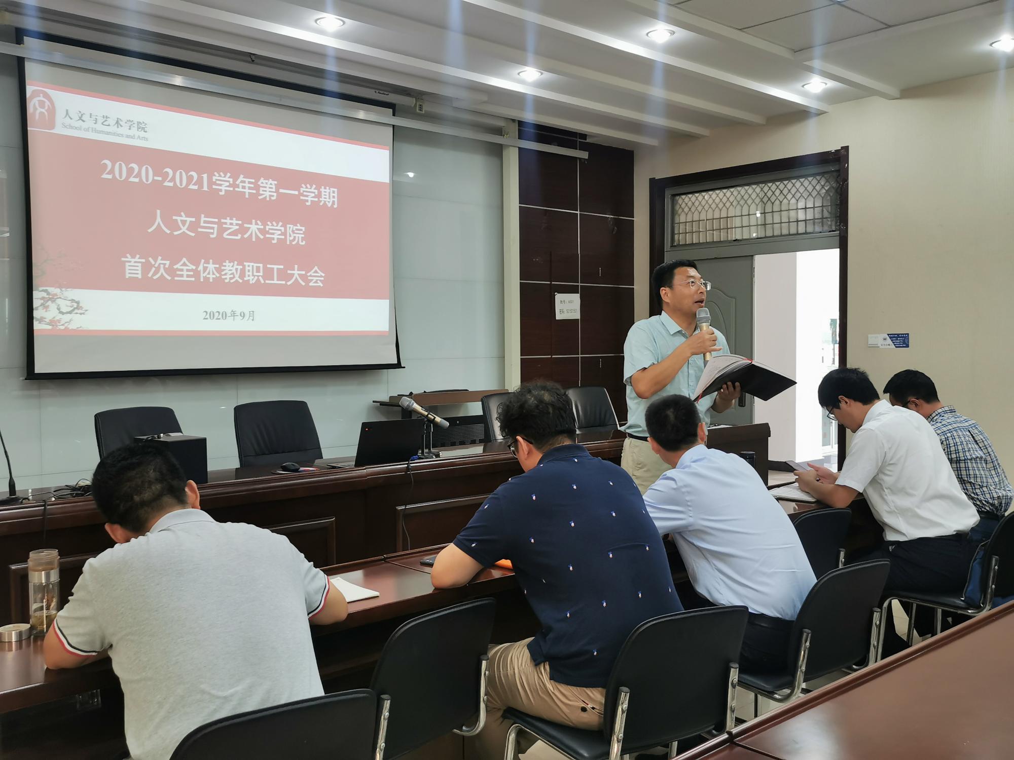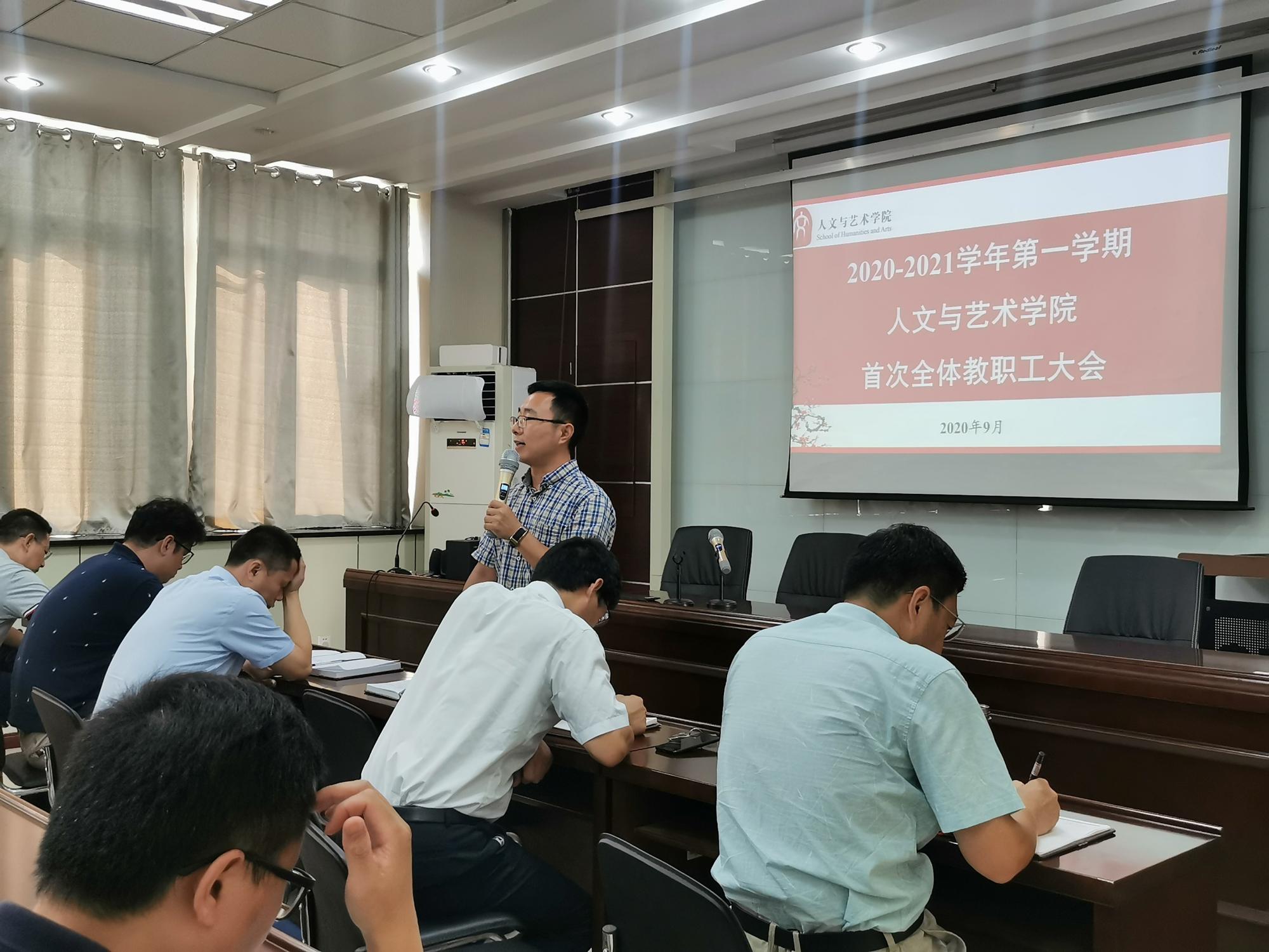 在文科楼A507会议室召开新学期第一次全体教职工大会。此次会议由方跃平书记主持,院长史修永,党委副书记丁恒星,副院长李广文、汤道路、刘振出席会议,学院全体教职工参加会议。