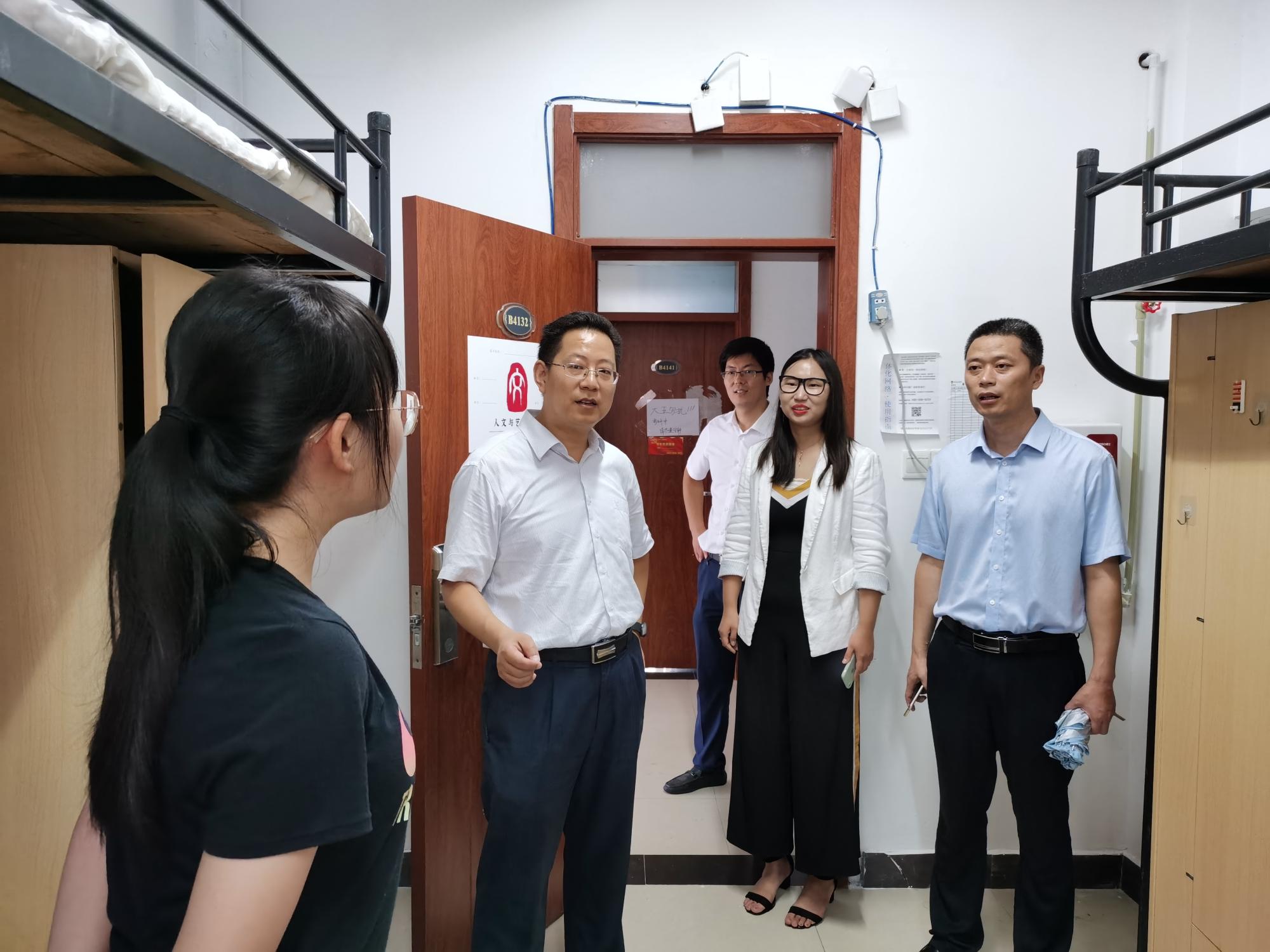 14日上午,校长宋学锋、副校长曹德欣、校党委副书记王增国等校领导在党政办、学生处等单位负责人的陪同下,来到无码av