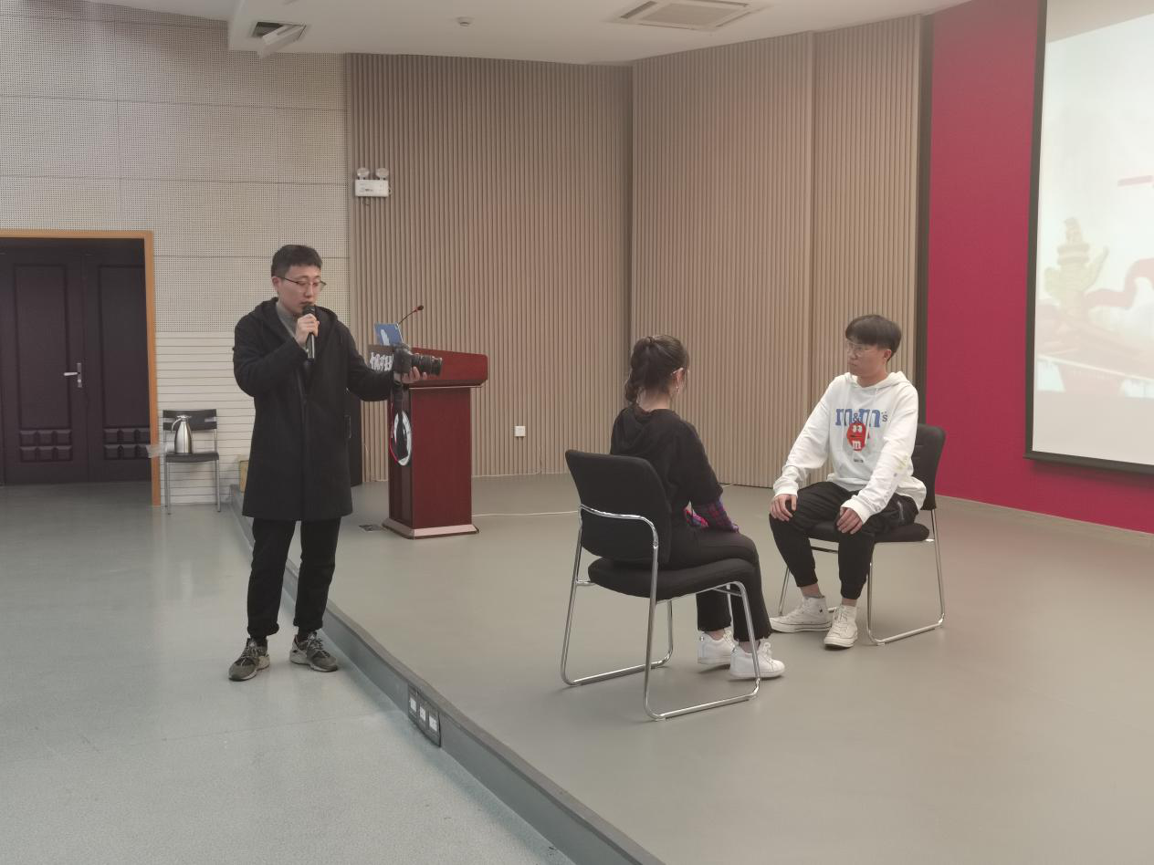 培训开始,宣传部李秀、档案馆周晓林和宣传部张弛等三位老师依次开始讲座。李秀老师立足实战,从理解人物采访、判断人物采访是否成功、采访者能力要求、采访准备、采访中突发情况的解决、具体提问技巧及具体要求等七个方面,详细介绍了人物采访的注意事项。周晓林老师则紧密结合口述史行业标准,提出了以历史文献资料为基础、以挖掘事实为原则、选题要典型普遍以及要以客观态度整理口述资料等四项基本原则,她对口述史规范流程每个细节都进行了不厌其繁的说明。张弛老师则通过现场模拟采访场景,围绕采访问题针对性、机位设置、灯光布置、人脸拍摄、画面节奏感、字幕制作、背景音乐等问题,逐一进行讲解,他还随机解答了在座同学围绕人物采访和专题片制作所提出的问题。