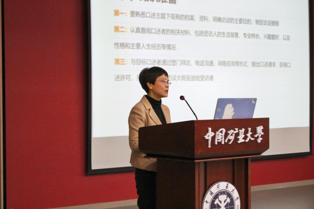 活动最后,广电系王青教授进行总结。她再次向文博中心、宣传部和档案馆表示感谢,感谢其为广电师生所提供的参与学校大型活动的宝贵机会;她也向三位培训老师表示感谢,感谢其全面、精准、充满实践智慧的培训。王青教授特别提醒广电同学,要通过三位老师的经验分享着重学习他们严谨的工作态度、敬业的工作精神以及精益求精的工作作风。她表示,这次培训是一次非常好的教学实践活动,为以后的实习实践拓展了空间。她更希望广电同学在实际采访过程中,真正领略到我校老党员的旺盛活力、高贵品质和坚定的理想信念,以此不断激励自己,传承矿大精神,勇担时代使命。广电系辛楠老师也向全体同学发出号召,在这次采访中大显身手,尽情展现所学知识和技能。