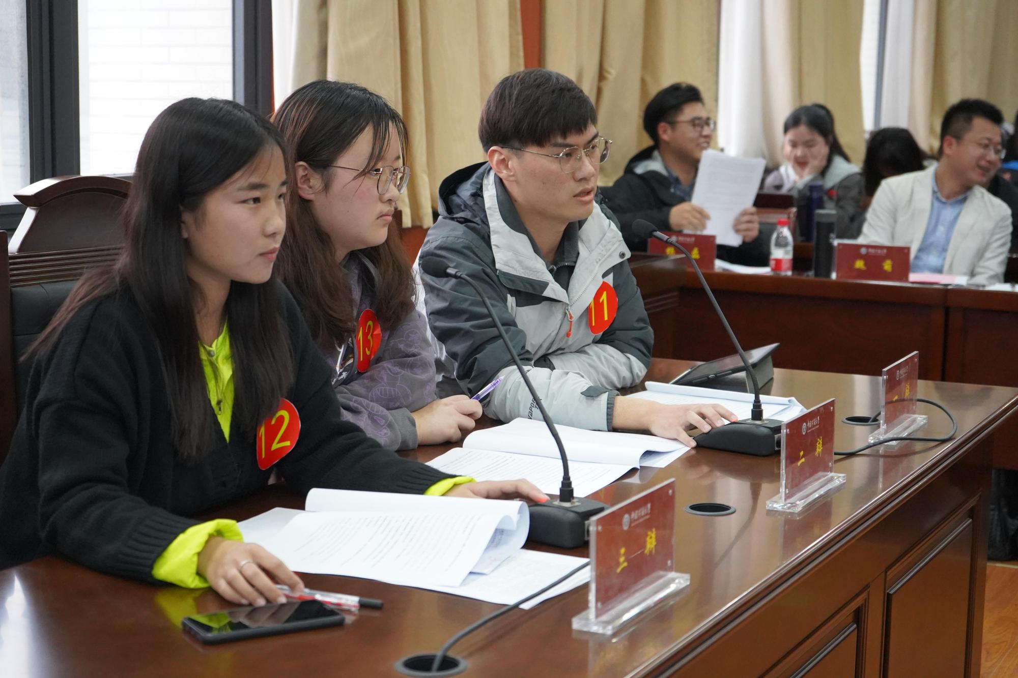 副院长汤道路、法学系主任冯浩,徐州市泉山区检察院第二检察部副主任张晓丹、云龙区人民法院民一庭法官魏萌、泉山区人民法院研究室法官杨磊,江苏禾嘉律所杨萍律师、刘伟律师出席本次活动并担任评委。