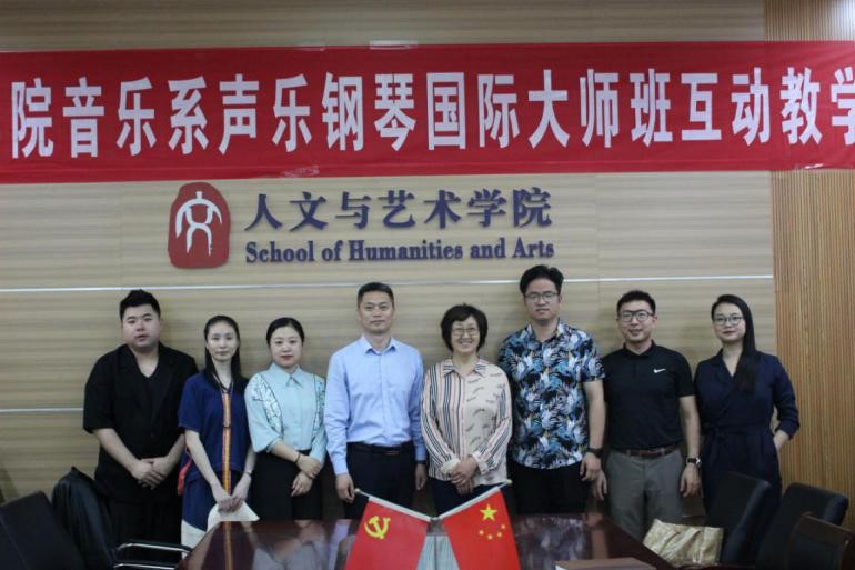 宋国旭老师作为项目主持人及本次仪式的翻译首先向加拿大女中音歌唱家Green教授简要介绍本次项目基本情况。随后史修永院长发表致辞,他表示:“开展声乐钢琴国际大师班与国际音乐名师开展合作,搭建一条音乐之美的友好桥梁,对于交流促进学生音乐素养有着极大的益处。”陈靓副处长在致辞中对学校领导和同学们对国际交流工作的支持表示感谢并表达了对此次开展声乐钢琴国际大师班未来收获丰富成果的美好期待。会后,宋国旭老师组织音乐系学生同国外专家进行友好交流与探讨学习。