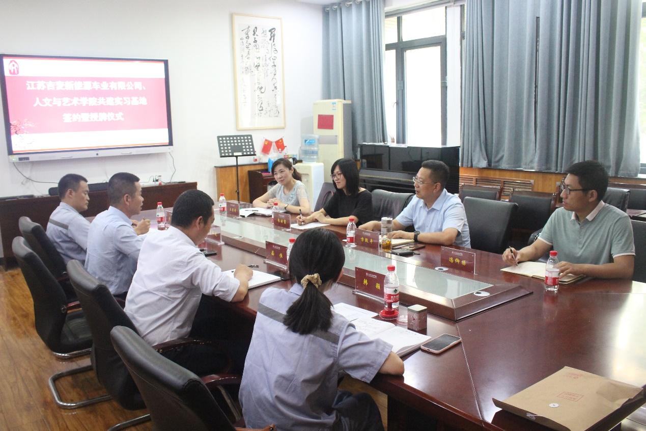 党委书记方跃平、中文系主任朱云霞、中文系副主任冯仰操、中文系党支部书记王丹丹老师,江苏吉麦新能源车业有限公司副总经理曹玮航,人力资源部部长茹恒、经理李东、科长韩颖出席会议。本次会议由中文系党支部书记王丹丹老师主持。