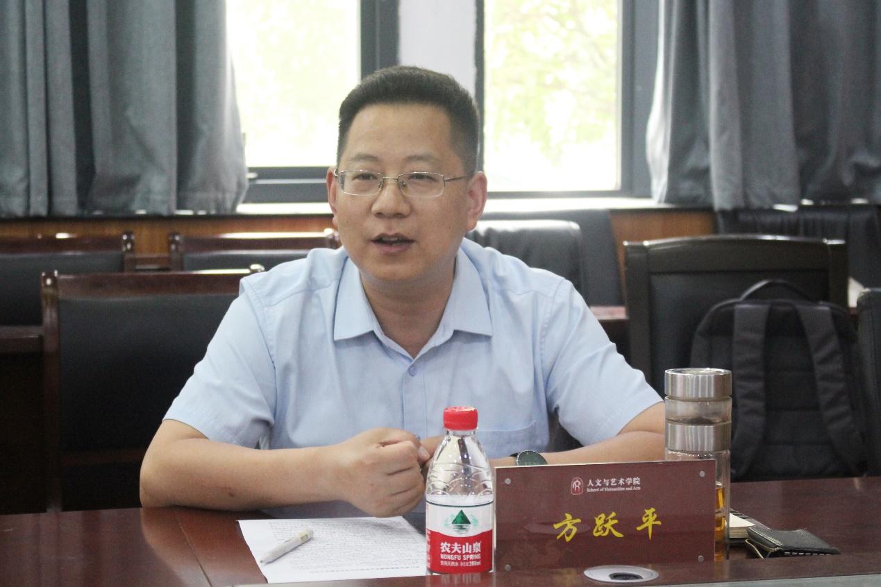 在短暂的开场白后,党委书记方跃平致辞。他从专业分布、教职工情况两个方面,向合作企业介绍人文学院整体情况和专业发展方向。他将目前学院学科发展格局归纳为“五四三三”四个字,即五位一体的专业系目、四个主要本科专业、三个硕士点、三大学科门类。他指出,目前学院下设中国语言文学、法学、广播电视学、音乐学、美术学,专业融合、跨学科综合发展趋势明显。除了综合化的专业设置,学院拥有系列如苏轼研究院、中国煤矿文学与工业文化研究中心、《红楼梦》研究所等配套研究平台和模拟法庭、语言实验室、音乐演播厅等组织机构,保障专业教学任务顺利开展,促进师生科研持续推进。方跃平书记强调,希望本次校企联动能够推动高校与企业之间的资源共享、优势互补。
