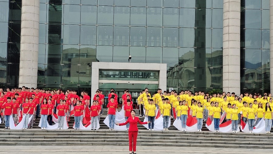 此次快闪节目以“革命先驱青年时代的光荣事迹”为主线,讲述了李大钊27岁时所撰写的《青春》中的奋斗精神与救国豪情、毛泽东26岁发出的《湘江宣言》之革命斗志以及23岁青年党员王杰的牺牲奉献精神,描述了新时代青年在中国共产党领导下接续奋斗的姿态。节目以大合唱《没有共产党就没有新中国》结尾,百名矿大学子通过列队组合,组成巨幅“100”字样,以此庆祝建党百年华诞!
