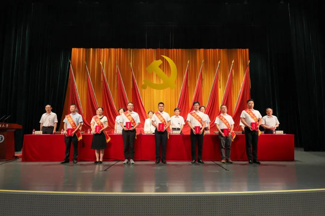 为庆祝中国共产党成立100周年,表彰近年来党建工作中的优秀个人和先进集体,引导激励全校党组织和广大共产党员不忘初心、牢记使命,奋发进取、创先争优,6月30日下午,我校于明德礼堂召开无码av