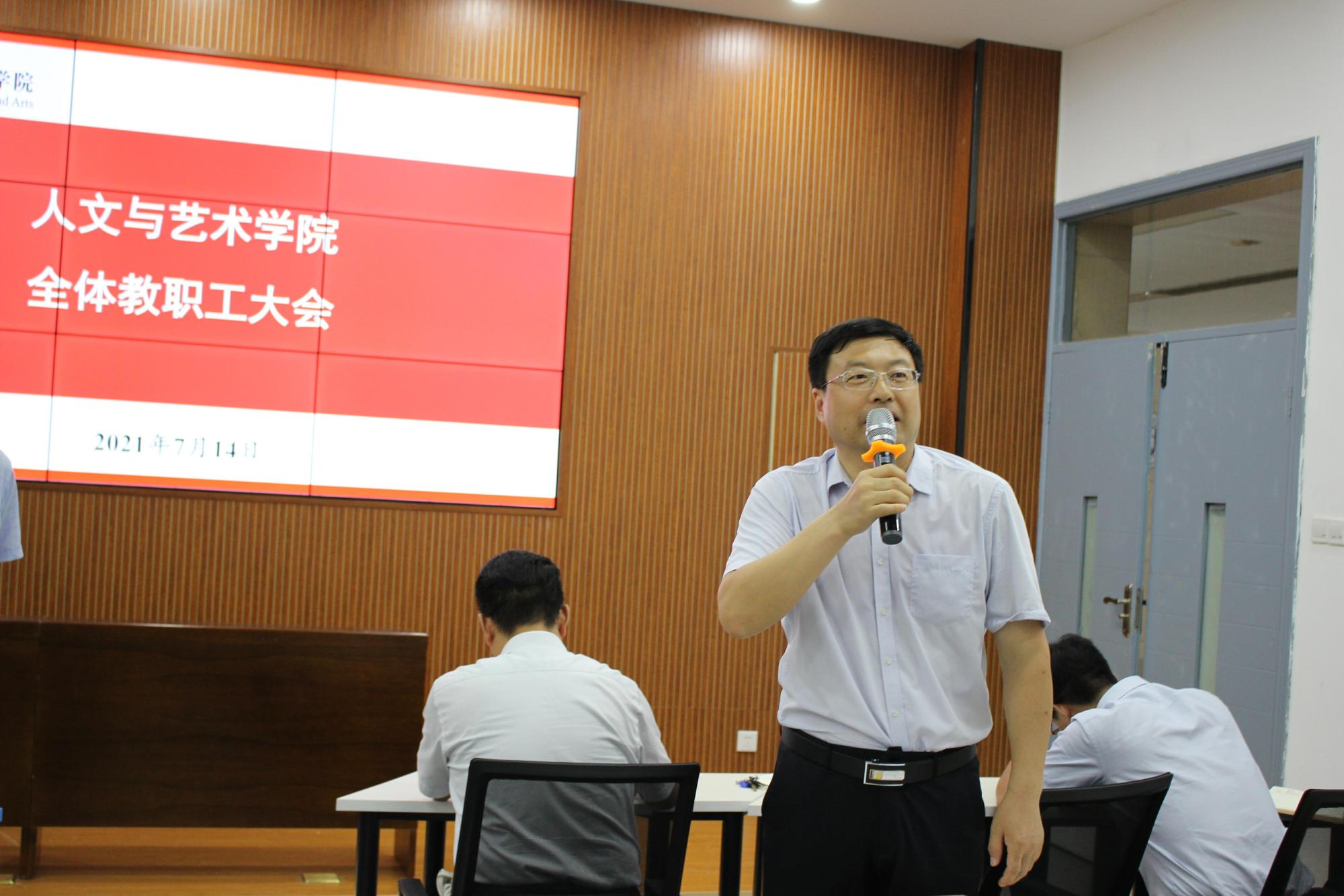 方跃平书记以“扬帆起航正当时,重整行装再出发”为主题发表讲话。他总结了学院组建一年多来在立德树人、教师发展、人才培养以及党史学习教育等方面取得的优异成绩;同时指出,学院在总体经济基础、党政管理能力、教师学术积累以及团队意识方面存在一定问题和不足。方书记强调,学院上下要立足当前、着眼长远、谋划未来、协同发力,坚定不移推进发展、多管齐下保障安全,把师德师风建设放在突出位置,推进信息公开、保障公平公正、坚持同力同行,提升学院核心竞争力。
