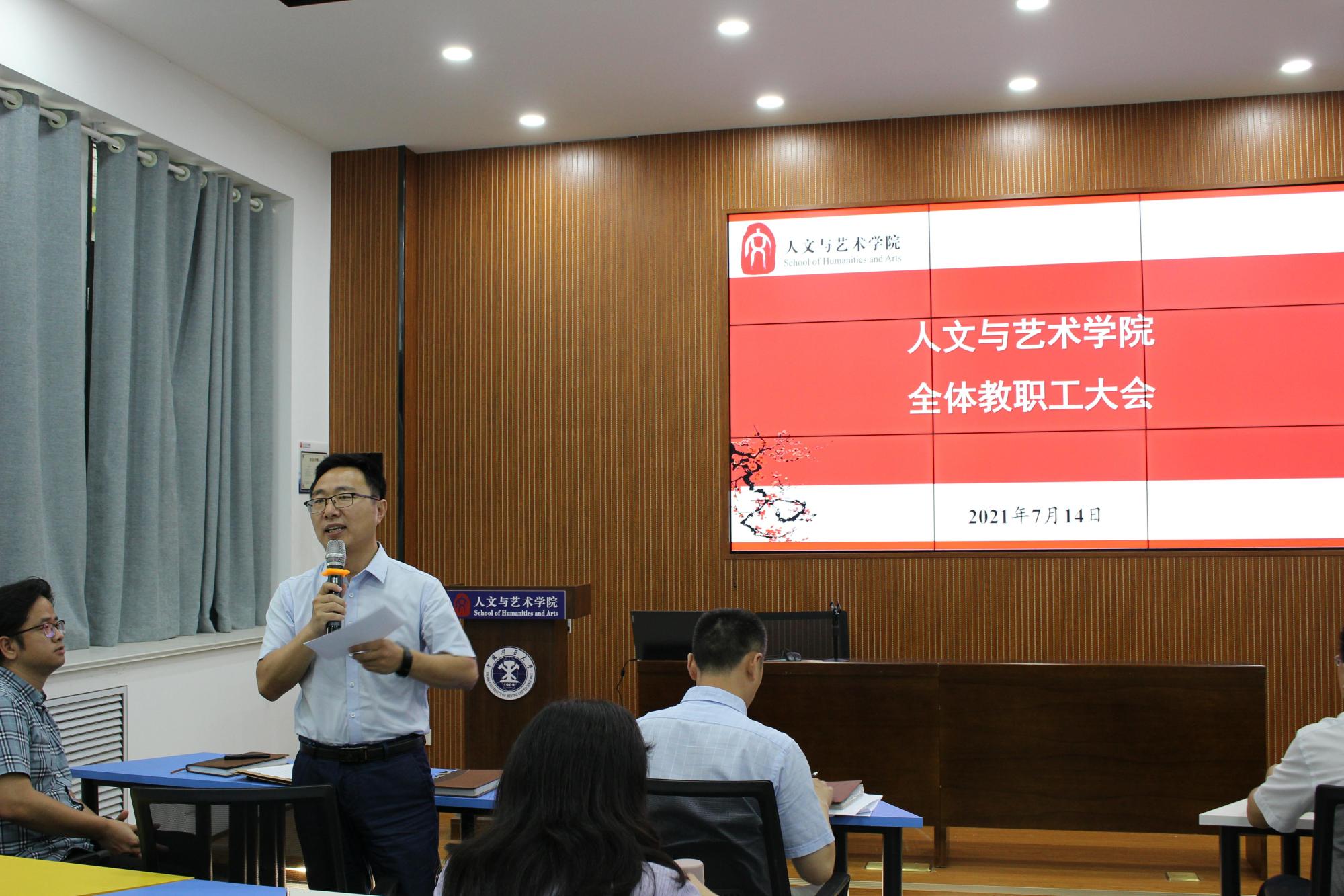于文科楼A111会议室开展全体教职工大会。院党委书记方跃平、院长史修永、副书记丁恒星、副院长李广文、汤道路、刘振出席,无码av