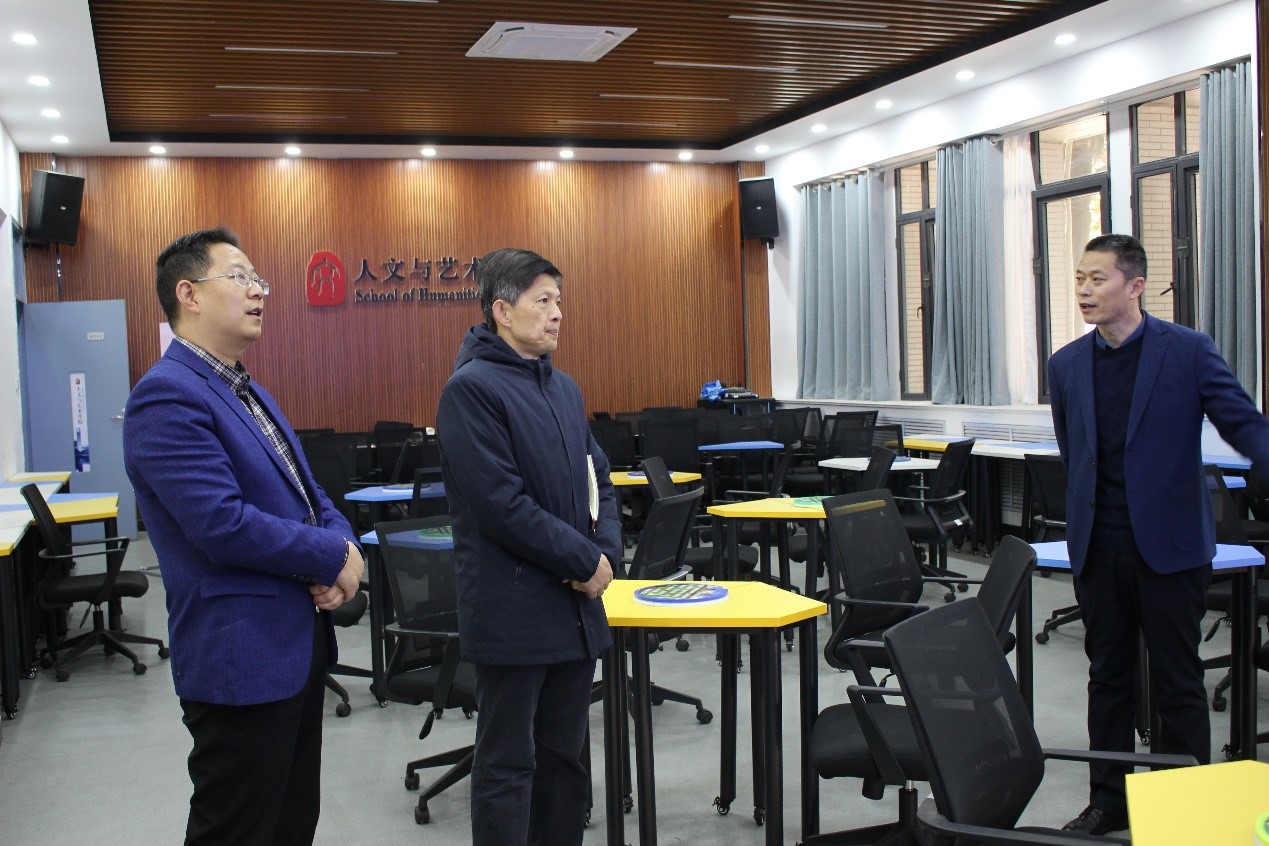 图一:宋学锋校长调研人文通识课研讨室建设情况