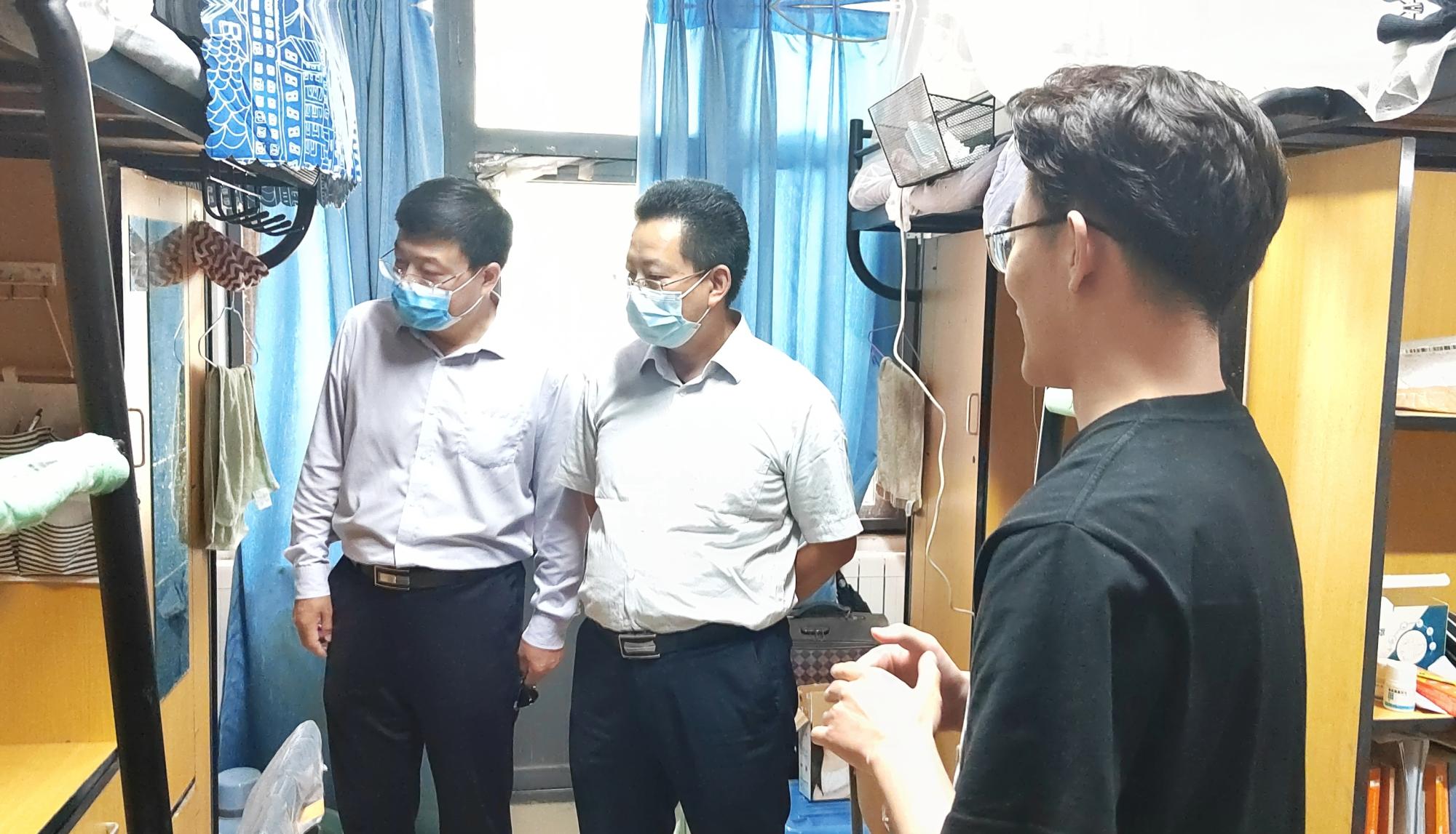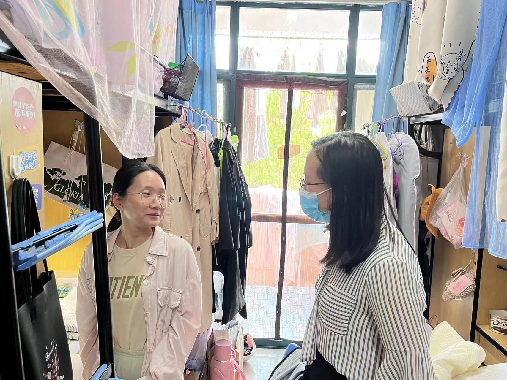 走访过程中,学院领导们与同学们进行了深切地交谈,详细地询问了因疫情防控封校以来同学们的学习生活情况,叮嘱同学们要经常开窗通风、谨防电信诈骗,勉励大家要志存高远、脚踏实地,在学习生活中保持昂扬的精神状态。针对部分宿舍存在充电器长期插在插线板上、物品摆放不规整等问题,方跃平书记提醒大家要注意宿舍用电安全、保持环境整洁,共同营造良好的学习和生活环境。此外,学院领导们还与临近毕业的研究生们交流了毕业答辩准备情况,鼓励还未落实就业的同学发挥自身所长积极求职、在面试中积累经验提升能力,对即将走上工作岗位的同学送上了诚挚的祝福。