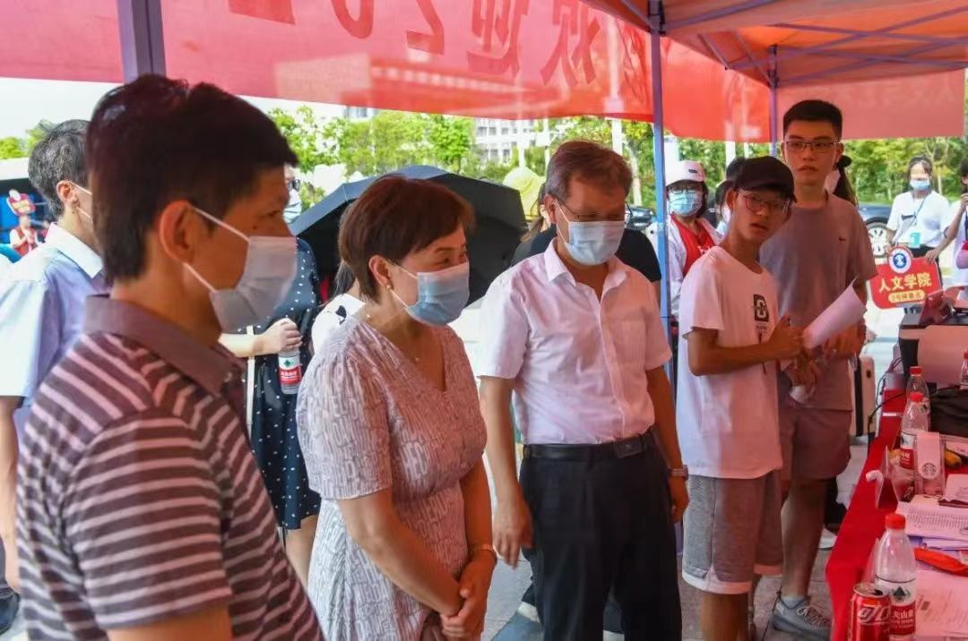 新生入学报到期间,校党委书记刘波、校长宋学锋、校党委副书记蔡世华等学校领导和相关部门负责人莅临学院迎新工作站,对学院迎新工作指导进行指导并对学院的迎新准备工作给予肯定和赞扬。学院党委书记方跃平,院长史修永,党委副书记刘宁和副院长李广文、汤道路等学院领导分别到南湖校区和文昌校区慰问现场工作人员和志愿者,叮嘱大家耐心细致做好服务工作的同时注意防暑。他们向新生表达了衷心的祝福与诚挚的欢迎,并与新生一同合影留念。