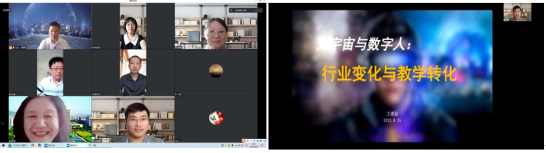 王建磊副教授讲座则从“元宇宙”这个当下最热的新闻与传播话题着手,具体讲述在课程建设中不断吸收最新科研成果的思路、做法和效果。他首先从概念阐释、历史与现实维度、理论与想象及未来发展等四个维度对“元宇宙与数字人”展开探讨,锁定了元宇宙概念的两大核心要素“三维互联网”和“虚拟空间形态”,并由此总结出其“时空拓展”“经济增值”“人机共生”的三种主要特性。通过四个现象级案例的示证,他指出,“数字孪生”“虚实联动”“虚实共生”“虚拟原生”为元宇宙的四种主要构建机制,而在这样的元宇宙世界中,场景映射、制度修正、生活平行、界面消失、新的通用设备诞生、体验升级、具身性、实时持续和稳定的技术支撑等等支点,最终共同指向了元宇宙的决定性品质——“在场”。由此,王建磊副教授进一步引出与元宇宙密切相关的另一个重要议题——“虚拟人”。他从2D真人、3D卡通和超写实三种技术形态,到商业应用实例,详细分析了虚拟人的行业应用及其影响,对人类利用虚拟人的现实生活场景引导在座老师展开畅想。围绕元宇宙价值论的一些议题,王建磊副教授还谈到,虚拟现实初步开启了哲学的黄金时代,一些后现代问题和现代性危机可能在对元宇宙的考量中获得更加深入而全新的思考。最后,他专门提醒人们注意元宇宙的反噬效应,把握好真实人与虚拟人的临界点,强调要从元宇宙的“众声喧哗”中回归其理论本质,从线性思考转向深度反思和审视。