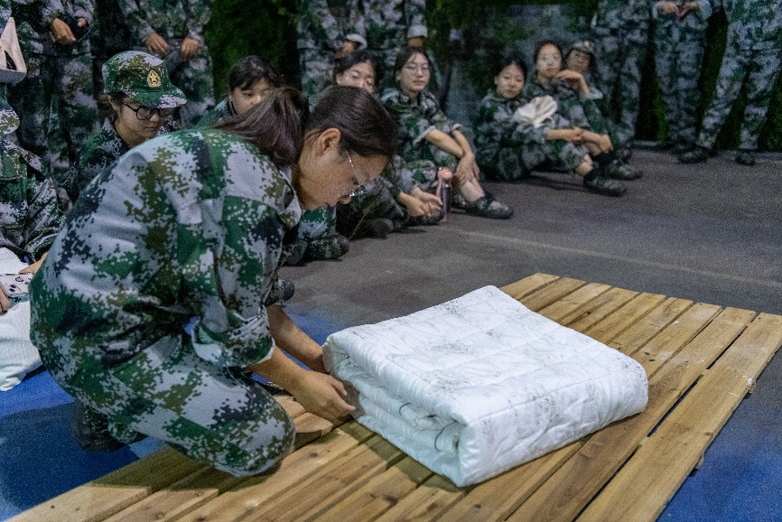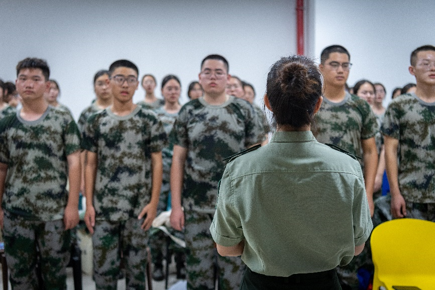 在紧张的操场训练之余,人文学子做到劳逸结合,利用休息时间展示才艺,提升集体荣誉感,培养团结一致的军旅精神;做好内务整理,注重细节、追求完美,合力将寝室打扫得一尘不染、清新明亮,以整齐的方块被,展现着自身的训练有素、严谨干练。一整天的训练后,人文学子不知疲惫、斗志昂扬,在兼职辅导员宋禹凝老师的指导下,用激昂的歌声唱出浓浓爱国情,备战合唱比赛,势在必得!