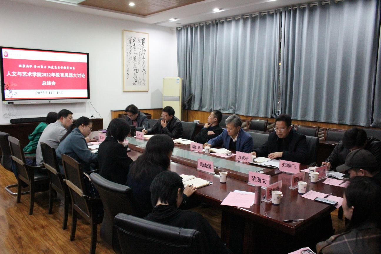 在文科楼A110会议室召开2022年教育思想大讨论总结会。校党委副书记蔡世华,教务部教务学籍服务中心主任郑晓飞出席会议,学院党政领导、各专业建设负责人、学科点负责人、各系主任及支部书记、学院机关各办公室负责人参会。会议由教学副院长刘振主持。