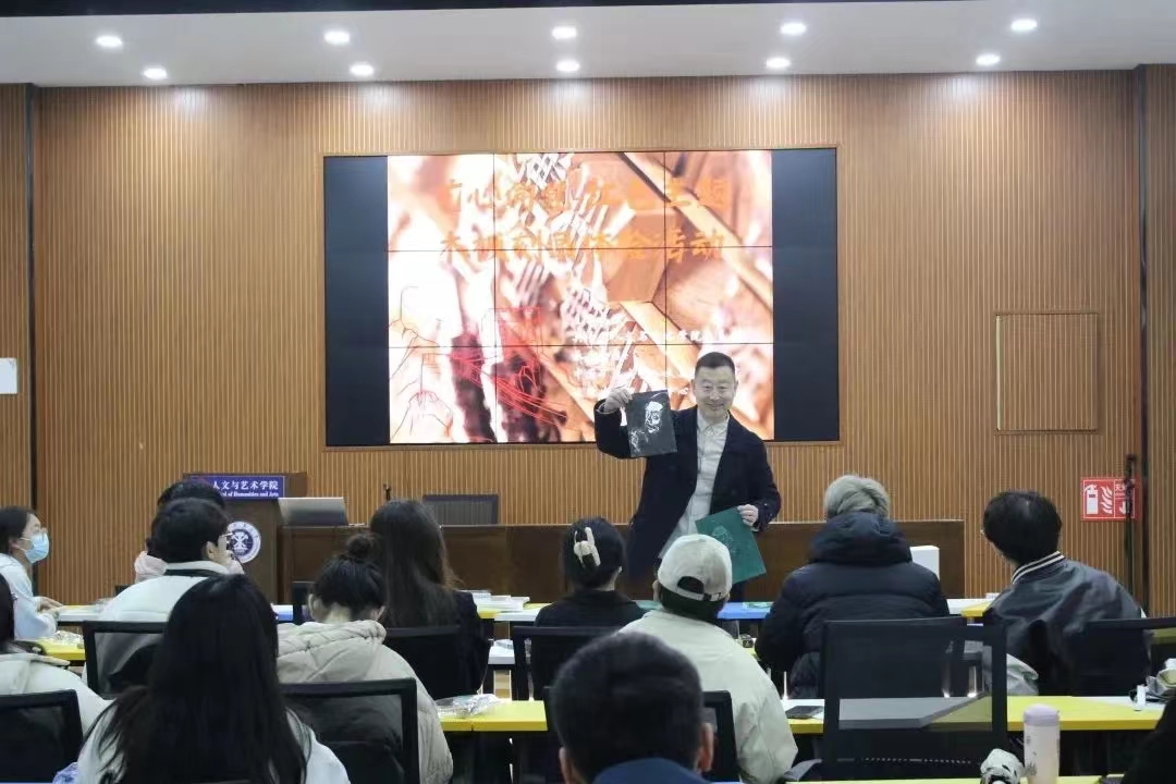 力行计划辅导员、美术系老师王磊主讲,学工办主任李玉雪主持。全校五十余名文艺爱好者参加了活动。