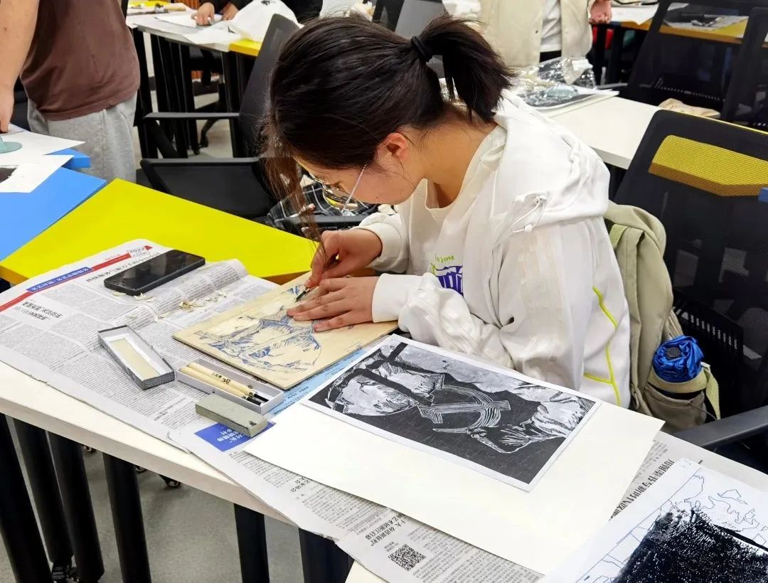 学院“艺心向党”系列活动旨在让广大青年在饶有趣味的艺术创作中厚植爱国情、深埋报国志。本期活动带领学员感受了木板刻画下的红色革命,体悟革命先辈传承下来的奋斗精神,既是一场意义深刻的思想教育,又丰富了校园美育。学院将进一步推动“艺心向党”活动开展,不断开拓新形势、注入新动能,引领学生践悟新思想,做勇于奋斗的时代新人。