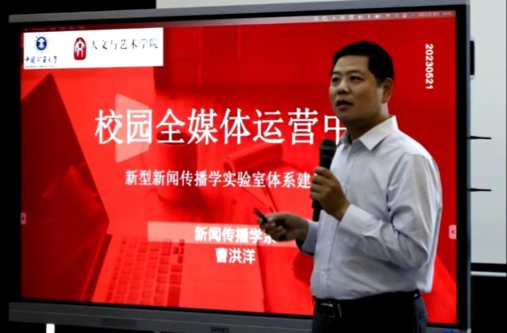 21日上午,人文学院新传系主任曹洪洋在视听方向毕业设计改革研讨会上,发表了《以“校园全媒体运营中心”为引导,构建新型新闻传播学实验教学体系》的主题分享。曹主任首先介绍了我校新闻传播学系对于构建新型新闻传播学实验教学体系的建设思路和阶段性成果;继而以“产教融合”为核心,对校园全媒体运营中心的组织架构和运行模式做了详细阐述,并分享了我校对于整合校园人才与地方相关产业资源的经验。在传媒实践教学方面,曹主任提出:产教融合新载体应采取“以教学为中心,开放课堂建设,促进教学改革突破”的综合模式;在这一模式下的人才培养将向各行业对接,依托城市发展带动产教融合,集成全社会力量共同塑造新时代的新型新闻传播人才。