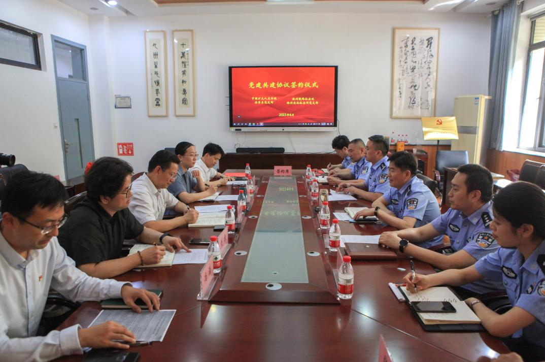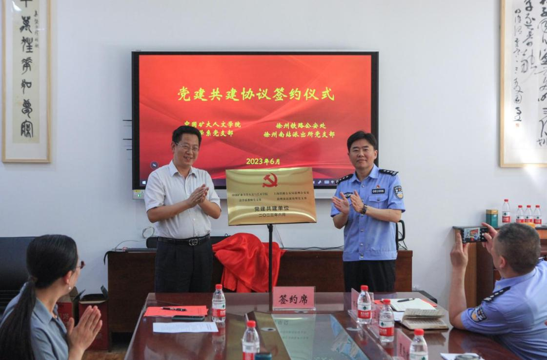 南湖校区文科楼A110会议室举行。人文学院党委书记方跃平、党委副书记刘宁、副院长刘振,徐州铁路公安处党委委员、政治部主任孟前进,机关党支部书记、党建办主任李楠,组织干部室主任夏勤敏、团委副书记刘文娟,徐州南站派出所党支部书记、所长王雷,徐州南站派出所党支部副书记、政委张勇,徐州南站派出所副所长祁中誉参加共建活动。