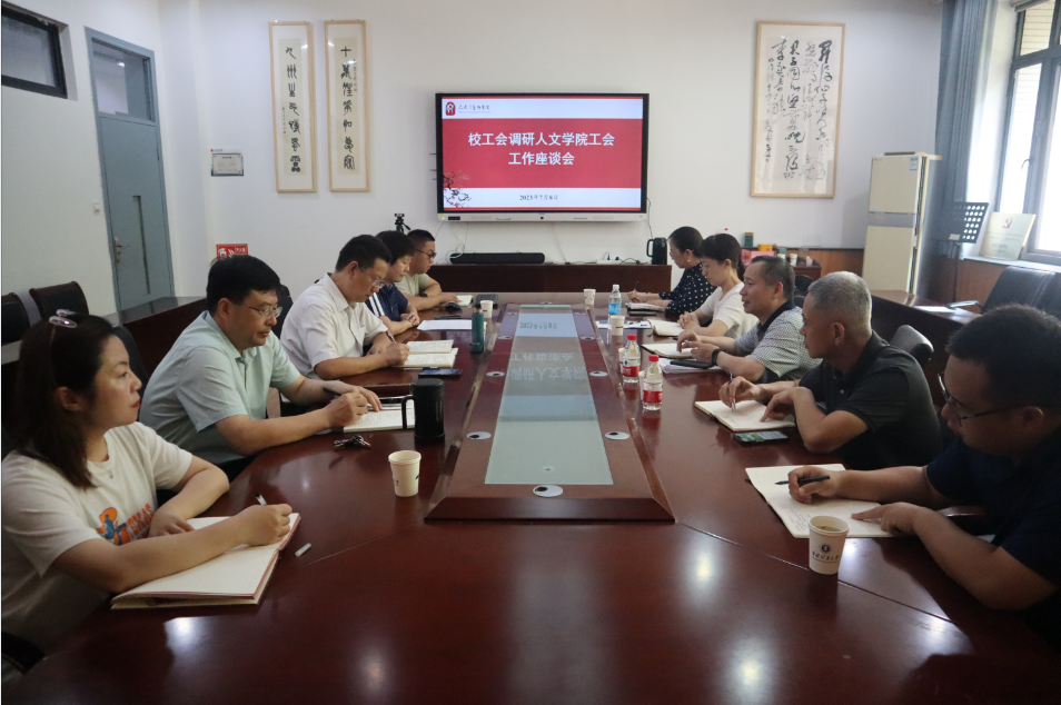 调研指导工作。人文学院在A110会议室组织调研座谈会,院党委书记方跃平、副院长李广文、工会主席吴红宇以及学院工会全体委员参加座谈并陪同考察。