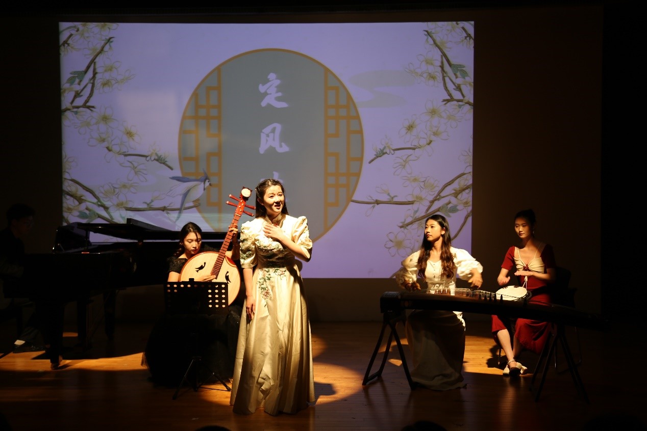 为营造“沉浸式”体验,学院邀请蓝色花火乐队演奏暖场音乐《夏霞》,轻柔动听的曲调令观众仿佛置身于悠长宁静的夏天。晚会还穿插有随机猜歌与现场抽奖的互动环节,现场观众踊跃参与、热情高涨,为晚会增添欢乐气息。