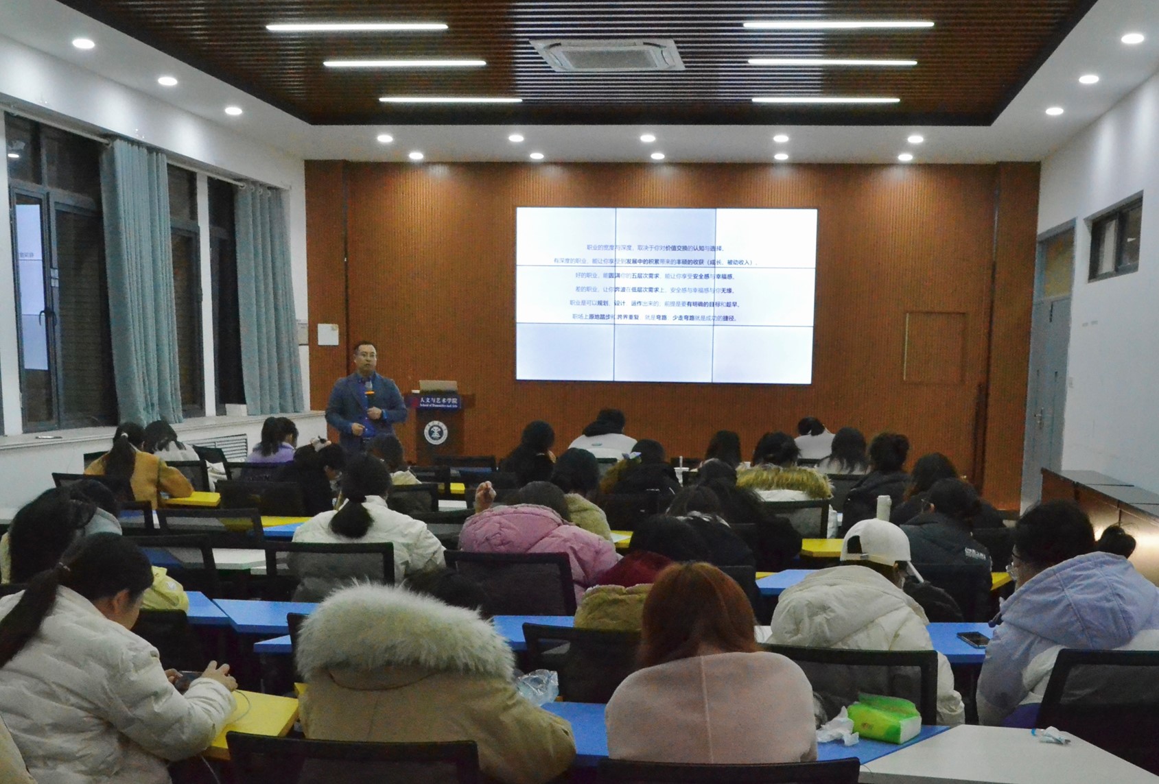 邀请中文专业2001届校友尹丰在学院A111会议室作题为“职业的宽度和深度”的讲座。学院党委副书记刘宁主持活动,并为尹丰颁发“大学生生涯导师”聘书。中文系部分教师和学生参加活动。