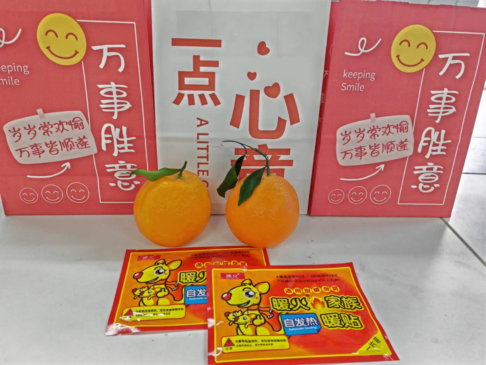 郭丽婉老师和陈翠翠老师一同向学子们送上考研温暖大礼包。“金榜题名”考研文具套装寓意美好,预祝同学们实现理想,最终金榜题名;橙子寓意“心想事成”,祝福同学们在即将到来的考试中一举获胜、成功上岸;暖宝宝贴驱散了冬日的寒冷,为考研学子们带来了温暖。在这段艰难的考研之路中,考生们从来不是独身一人,学院老师们通过礼包寄托对考研学子的期望关怀,祝福同学们一路通畅,蟾宫折桂,静候佳音。