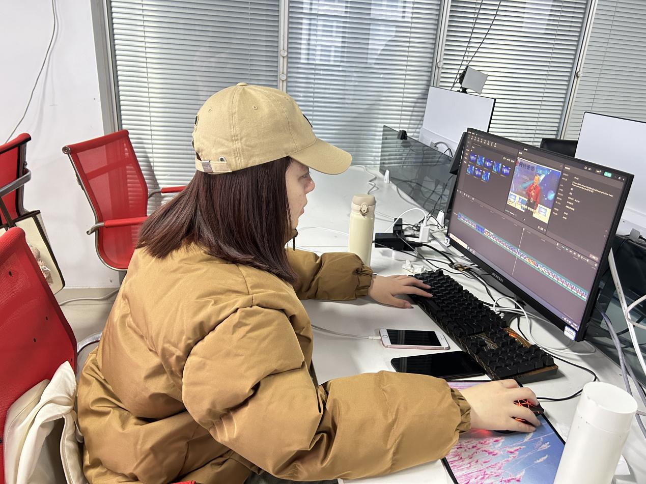 在认真学习并掌握相关软件操作方法后,实习同学结合单位业务方向与个人职业规划,分为剪辑、运营、主播三个小组,积极参与到实际工作当中。剪辑组同学结合课堂知识与实践经验,快速掌握剪辑技巧,熟练使用剪辑软件,专业能力得到系统训练。运营组同学通过学习上播技巧、观测开播数据,对知识付费、直播电商形成更深入的了解。在练习直播话术、对标成熟主播基础上,主播组同学进一步参与话术录制与现场试播活动,近距离感受直播魅力。