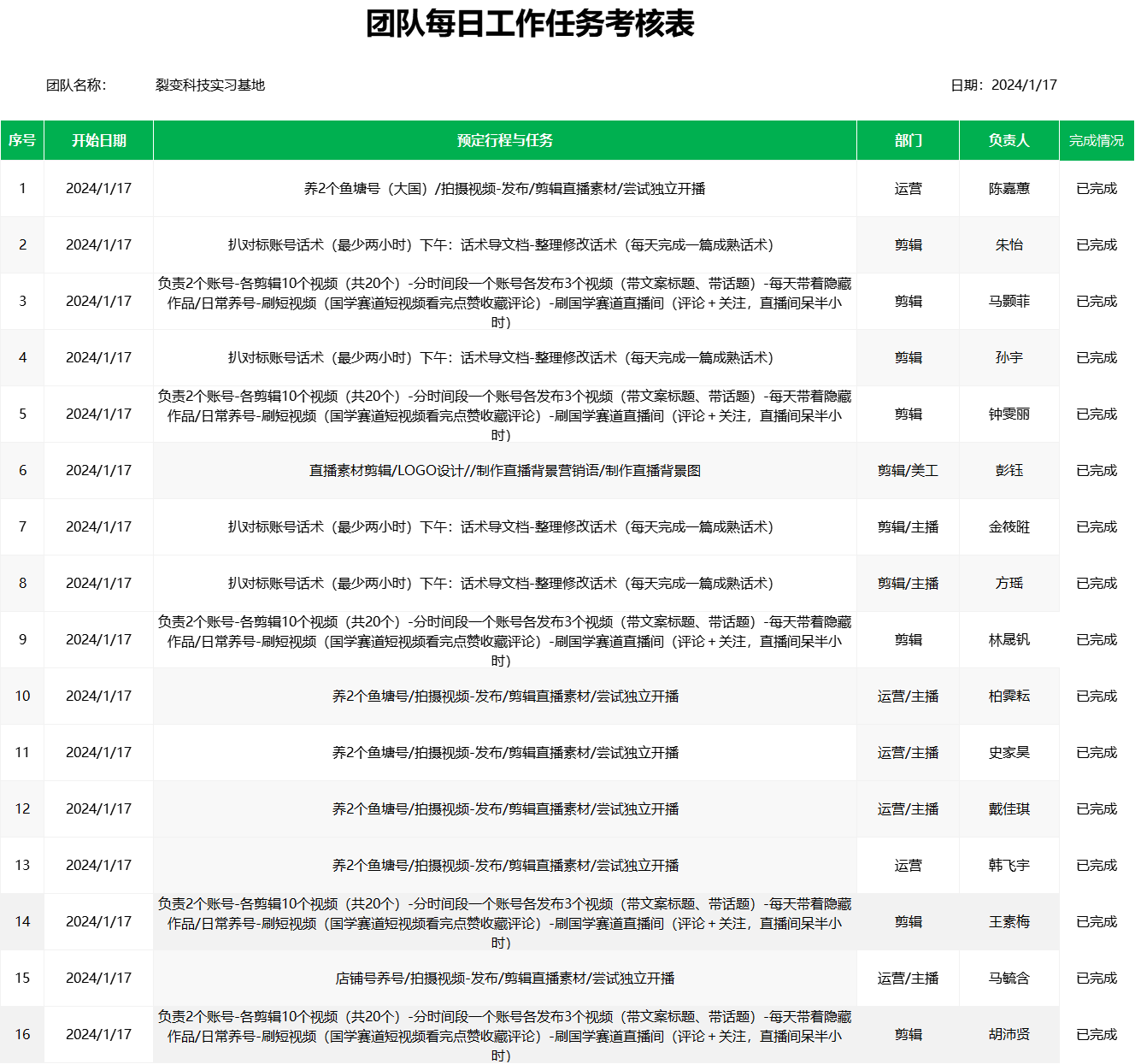 实习每日任务考核表