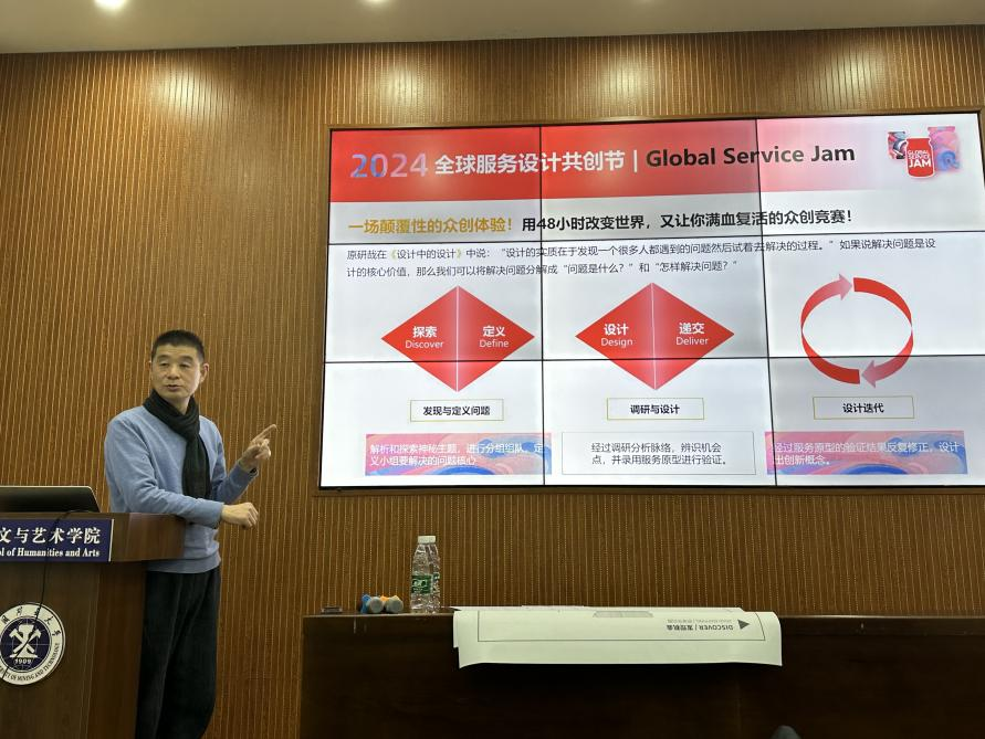 新闻传播学系、美术系师生在文科楼A111会议室共同参加了校企合作项目——“2024全球服务设计共创节”活动。