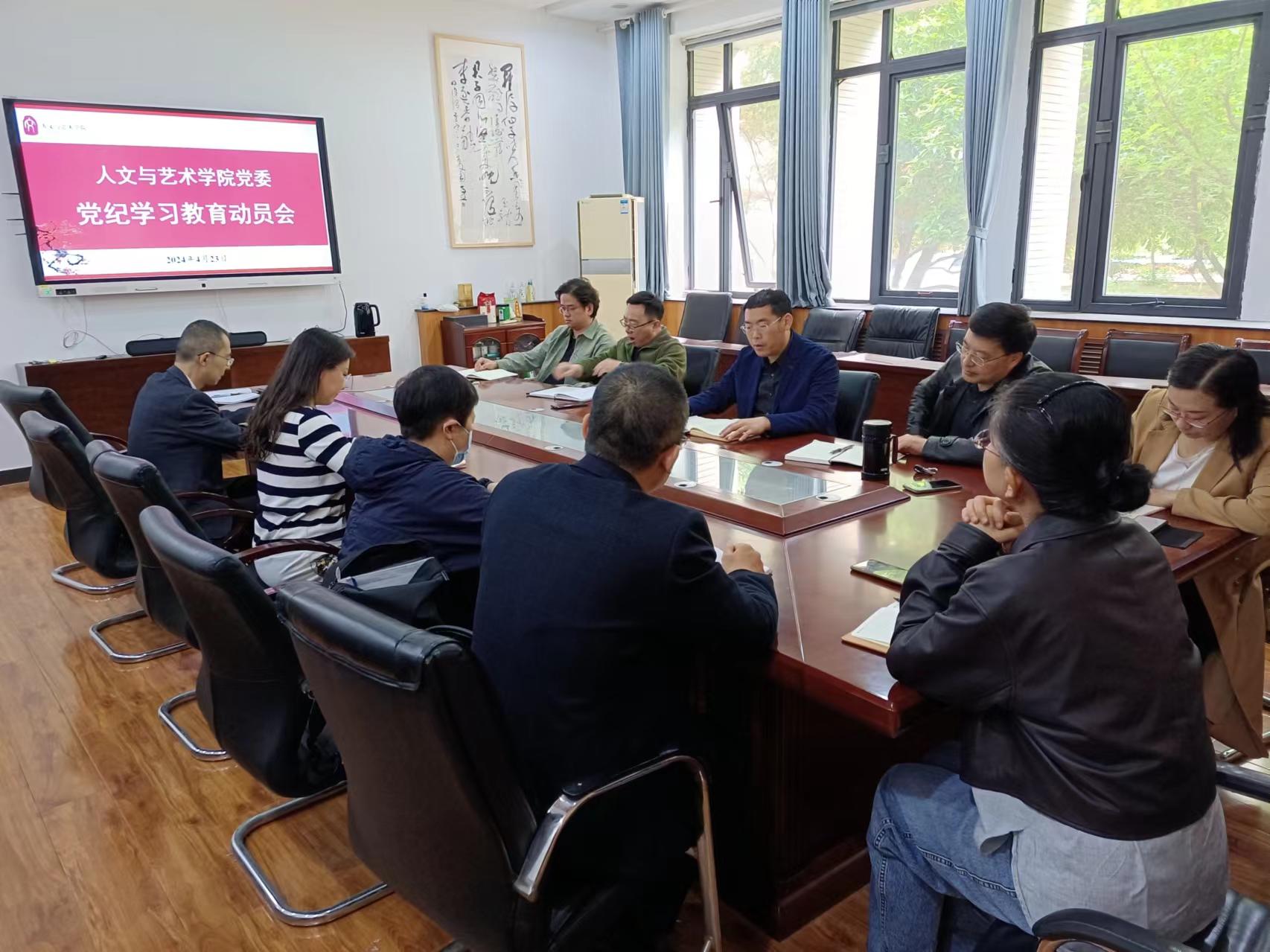 党委在文A110-2会议室召开党纪学习教育动员会。全体党委委员、各党支部书记参加会议,学院党委书记赵红灿主持会议。