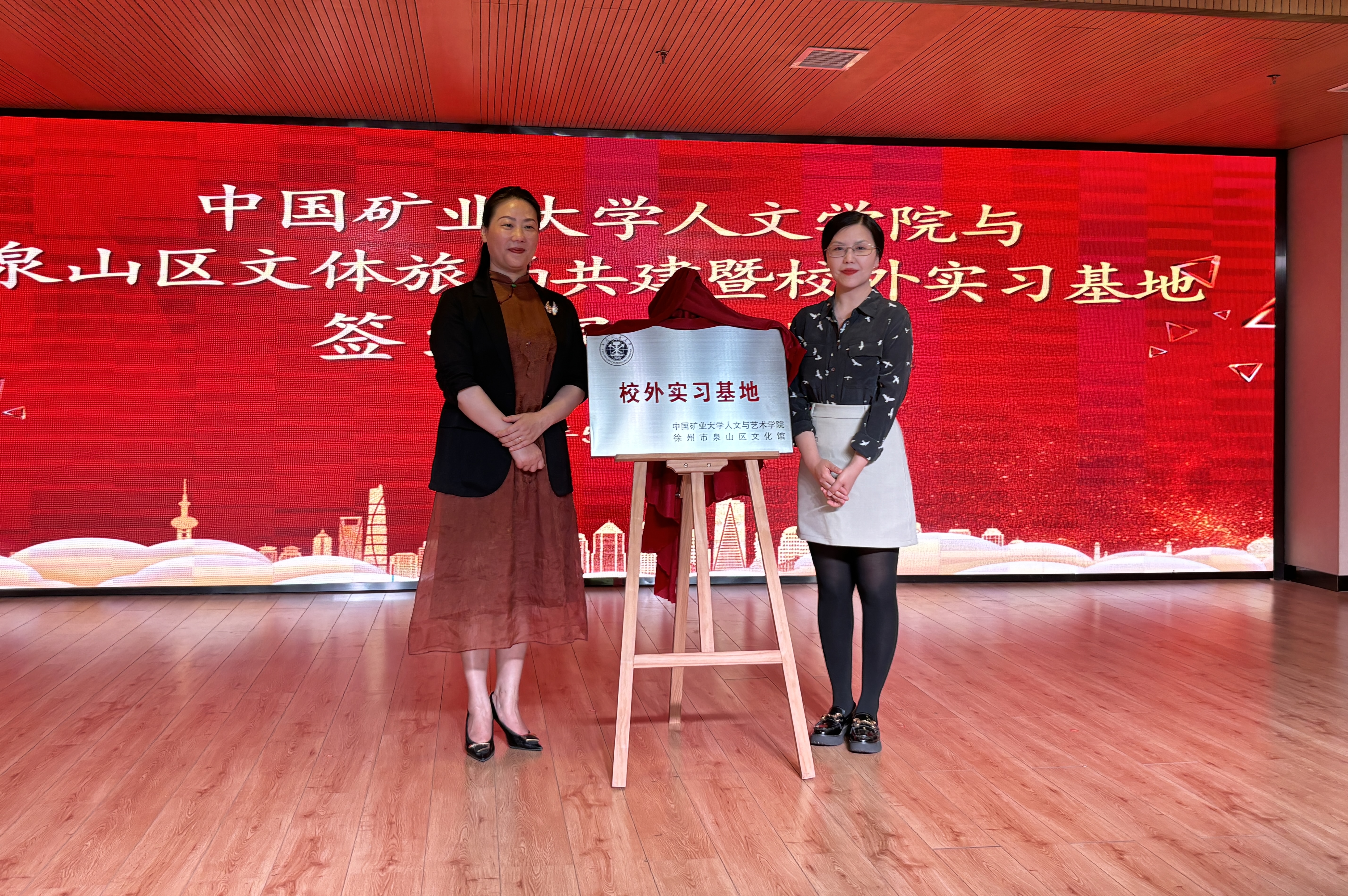 双方领导共同签订实践基地协议书,并完成揭牌仪式。人文学院与泉山区文体旅局接下来会共谋发展,充分调动各自优势,携手共进,通过学生社会实践活动和产学合作项目的陆续开展,进一步推动双方事业高质量发展,共同为人才培养、社会发展贡献力量。