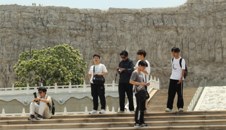 师生不畏骄阳、团结合作,用镜头记录下艾山的青山绿水、飞鸟池鱼、雕梁画栋,用心感受当地深厚的历史文化底蕴。
