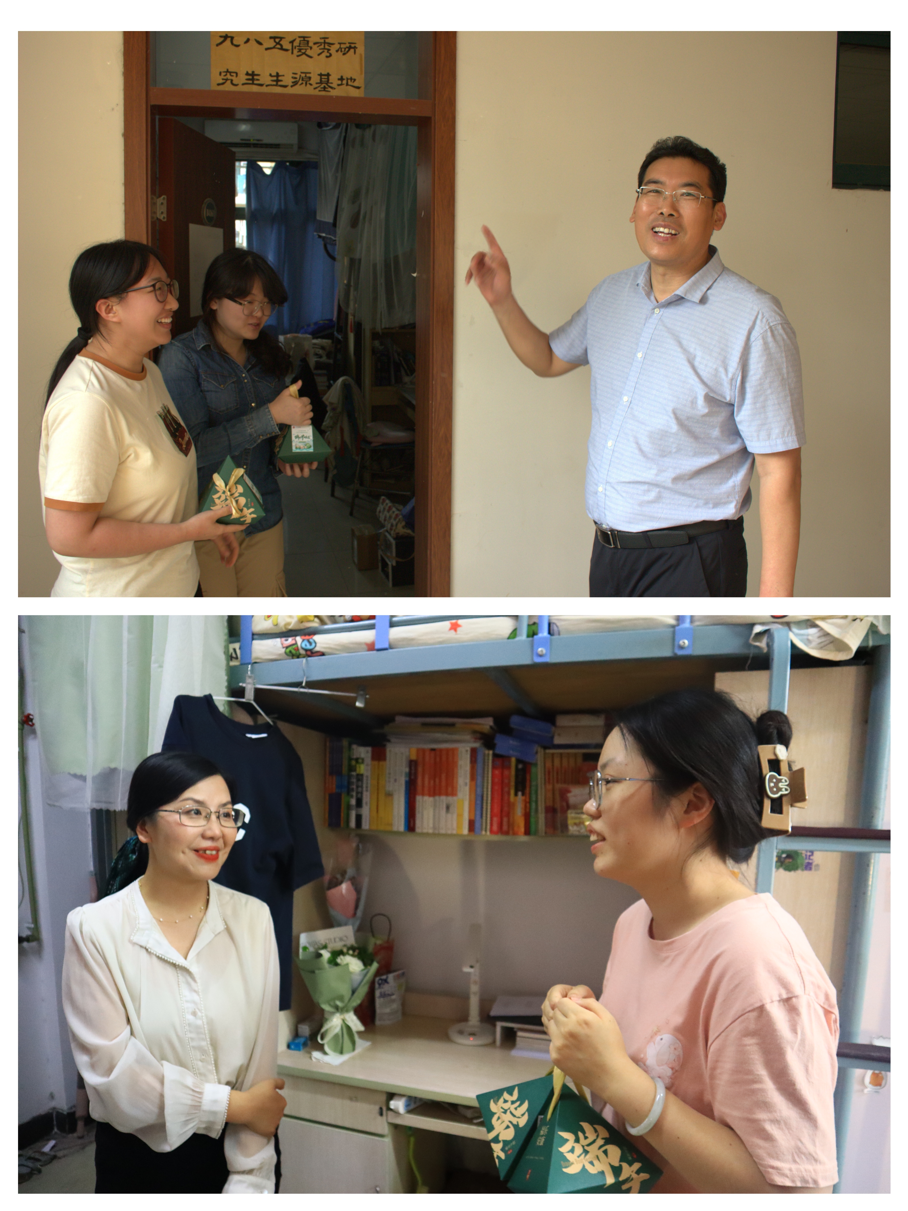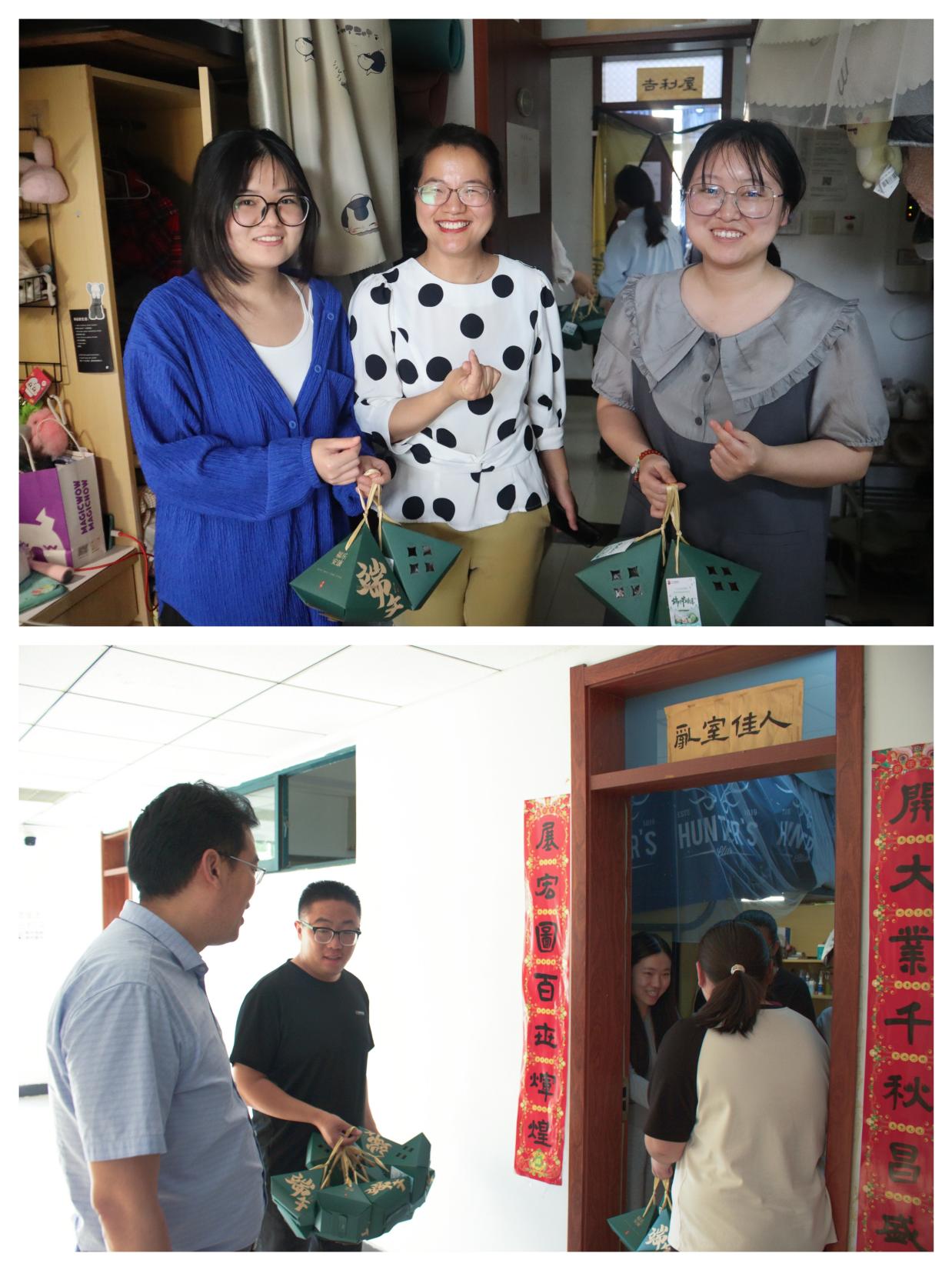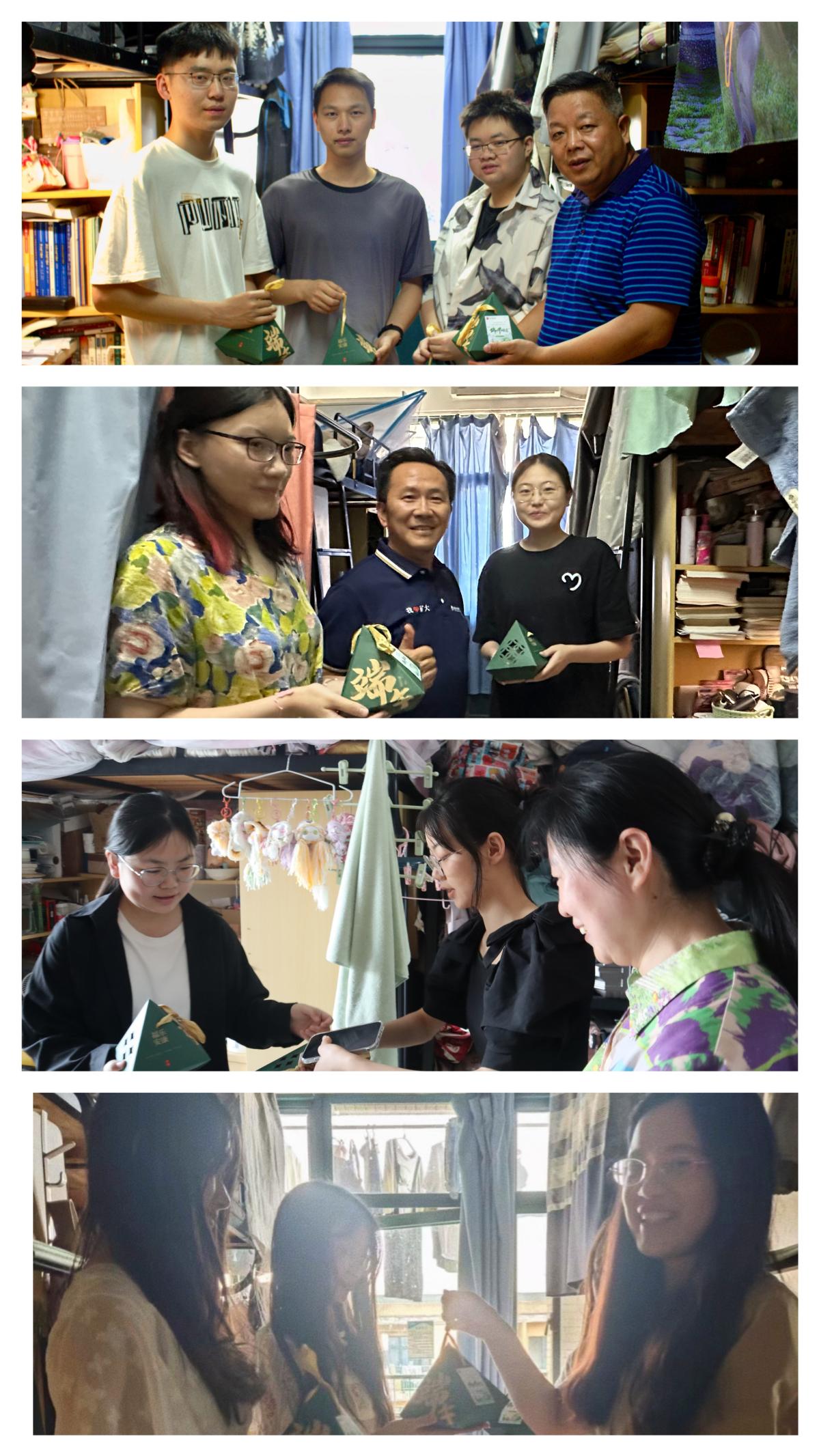 拿上粽子礼盒,载着学院满满的情谊,老师们一同前往宿舍。走访中,赵红灿书记悉心了解毕业生们的升学就业情况,关心同学们近来的学习和生活状况。张矛矛院长向大家送去了节日的温暖祝福,鼓励同学们勇敢追求梦想,传承学院精神。收到祝福的毕业生们满脸洋溢着幸福的笑意,也为老师送上节日祝福,表示将铭记这份情谊,不负学院期待。节日的温馨氛围与浓浓的温情包裹着大家,充斥于每个人心间。这个端午节成为了师生情谊的见证,也是毕业新篇章的起点。