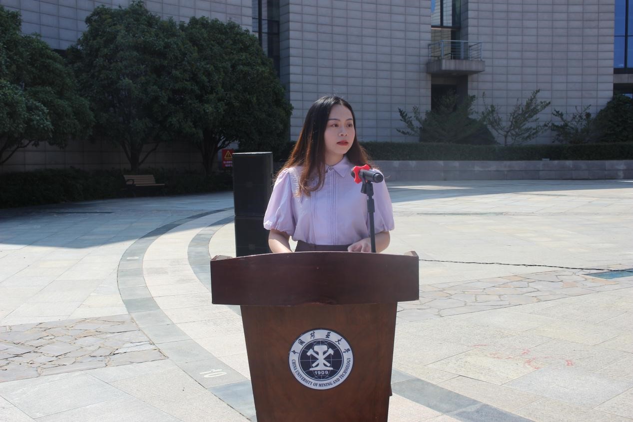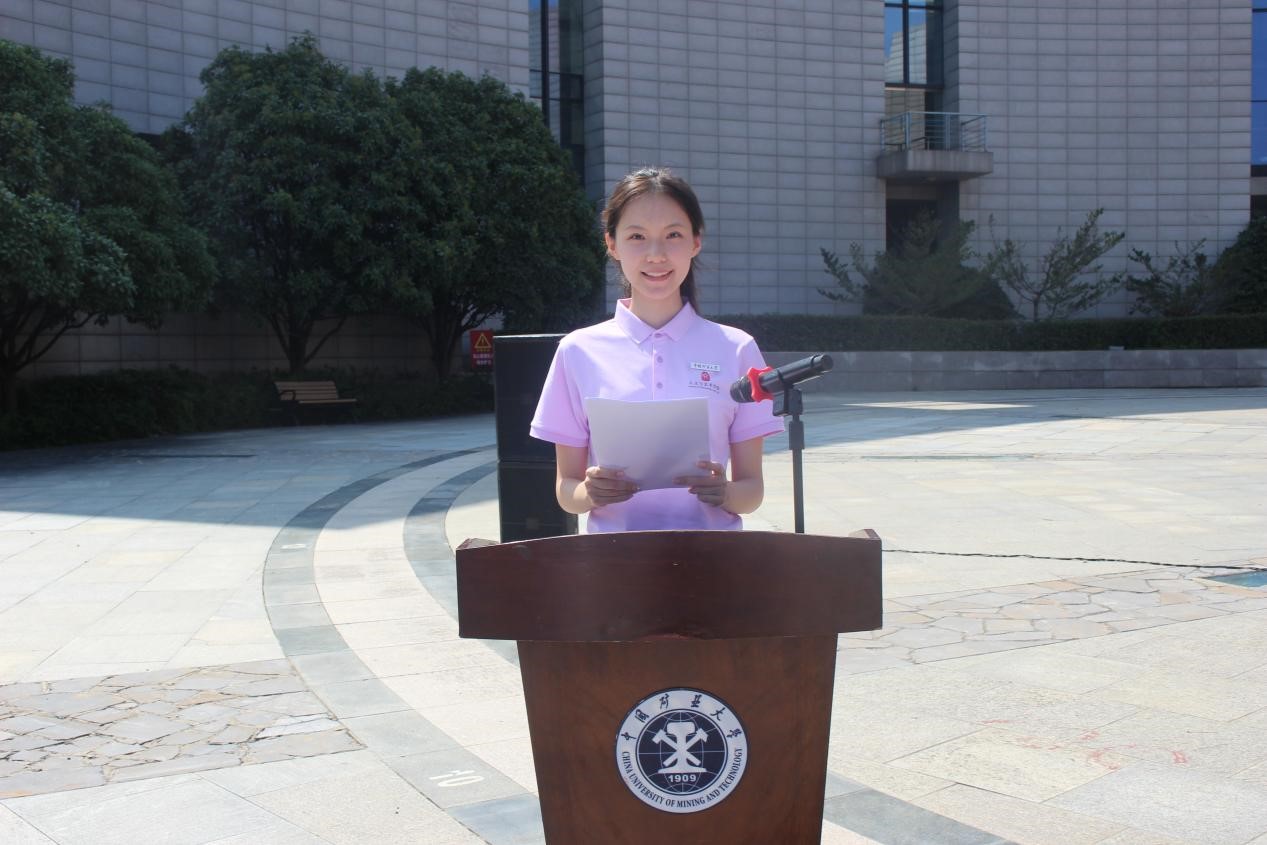 网络与新媒体24-1班赵轩宇、新闻传播硕士2024级宋玮佳作为新生代表发言。她们讲述了自己与矿大、与人文学院的不解之缘,表达了对即将到来的新旅程的期待,分享了对未来学习与生活的规划,并表示将担当起新时代青年的使命与担当,以实际行动报效社会与祖国。