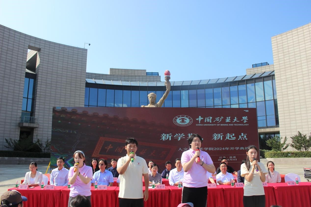 汉语言文学22-1班邓雅文、音乐硕士2023级梁钦杰作为老生代表发言。他们回顾了自己的大学生涯,结合在学习、学生工作、社团活动等多方面的经历与收获,表达了对矿大与人文学院的感激与热爱,并鼓励新生们勇于探索、热爱生活、崇德尚学、奋发前行。