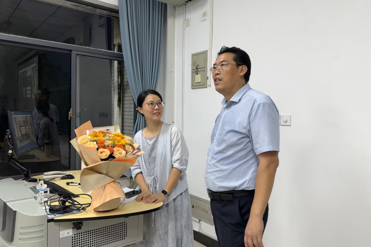 学院党委书记赵红灿、院长张矛矛、副书记刘宁到课堂,为教师献上鲜花并代表学院向他们的辛勤工作表示感谢,勉励他们继续坚持立德树人初心,追求卓越教学,深化科研创新,关注学生发展。