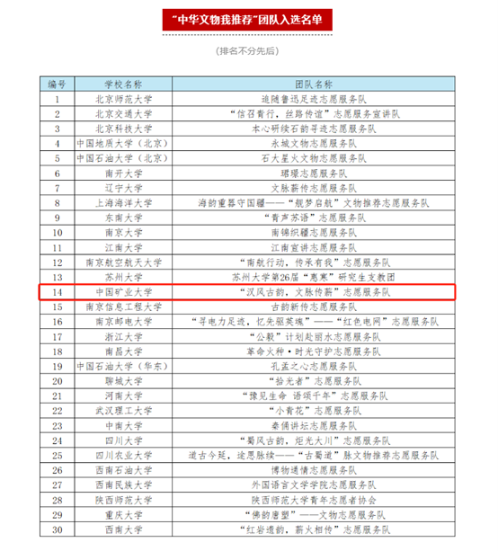 “汉风古韵,文脉传薪”志愿服务团成功入选。