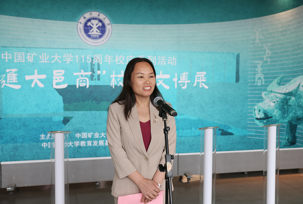 赵清荣代表殷墟博物馆致辞。她表示,殷墟博物馆定位为商文明博物馆、国家重大专题博物馆,为殷墟考古和商文明研究成果提供了重要展示平台、为解密并阐释中华文明密码、延续中华文化根脉提供了新的支撑。保护好、研究好、展示好、传承好、传播好伟大的商文明是殷墟博物馆的职责、使命。115岁的矿大与伟大的商文明在今天成功牵手,历史与历史的碰撞,必将溅起绚烂的火花。希望即将揭幕的“走进大邑商”展览,让更多学子能够从伟大的商文明中感受到泱泱中华、文明博大,汲取更多前行的力量,增强民族文化自信,助推百年矿大再创辉煌。