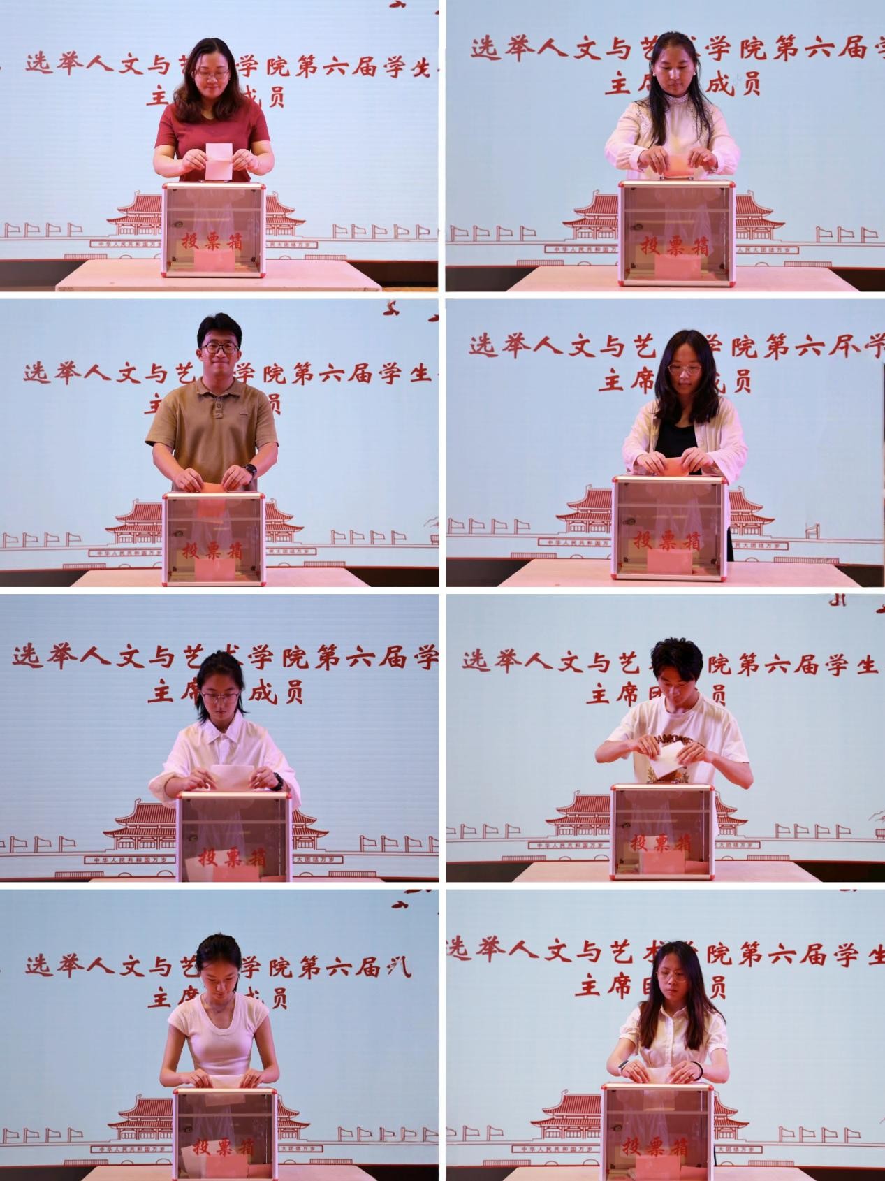 在第六届学生会主席团竞选环节,候选人周旸、赵芯冉、候晓雯、王景灏、卢垚、吕怡筱、李子瑞依次登台,就个人经历、工作经验、个人优势、未来规划等方面分别进行了竞职演说并现场回答老师和学生代表的提问。最后,每位候选人上台进行三十秒的个人陈述。所有候选人展示完毕后,参会老师与学生代表进行不记名投票,大家认真填写选票后,依次上台进行投票,投票结束后将选票交由计票人进行计票工作。
