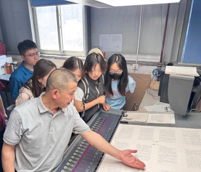 师生的到访表示欢迎,并详细介绍了我国文字载体和印刷技术的演进过程。他说,印刷技术的进步有助于实现信息大规模复制与广泛传播,推动知识普及与社会发展,与此同时,它还积极助力文化遗产保存与历史记录传承,为后世研究提供重要文献资料与文化载体。淮安新华企业管理有限公司市场营销部副部长谢宇作了“印刷原理及工艺”的主题分享,他从印刷原理、印刷材料、印刷工艺流程、印刷质量与控制、印刷技术的发展与趋势和印刷应用领域等六个方面对印刷原理及工艺进行了详细讲解。潘俊成对江苏淮阴新华印务有限公司的热情接待与经验分享表示感谢。他说,此次实地调研交流活动是新闻与传播专业《数字出版导论》课程的重要组成部分,是师生深入出版印刷行业一线的一次实地考察。同学们直观了解了印刷出版流程与技术发展趋势,希望同学们在今后的学习中将理论知识与行业实际相结合,进一步提升专业认知、明确职业规划。
