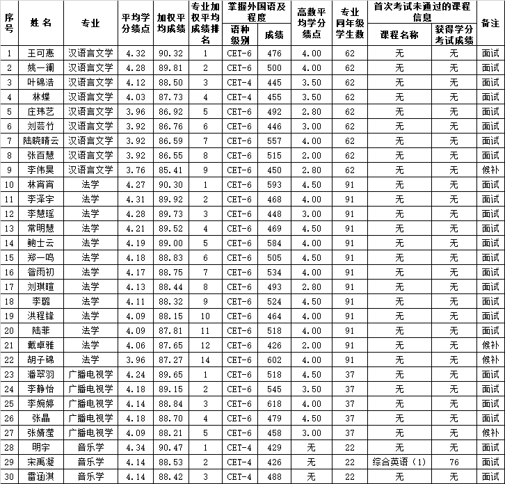 根据学校和学院2022年推荐优秀应届本科毕业生免试攻读研究生工作的通知和实施办法,经学生自愿申请、学院推荐免试研究生工作领导小组审查,现将无码av 推荐2022年普通类免试攻读研究生情况予以公示,公示期为2021年9月17日-9月19日,公示期间如有问题,请联系学院教学管理办公室,联系人:王老师,电话:83590112。