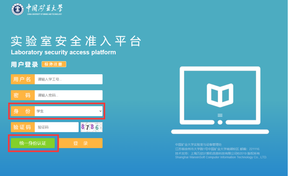 (2)登录方式:校内用户直接点击统一身份认证进行登录,以学生为例如下图所示。
