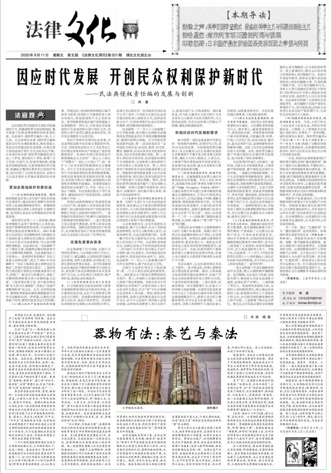 日,《人民法院报》(第五版)刊登了以无码av 法学系主任冯浩老师为第一作者的《器物有法:秦艺与秦法》一文。