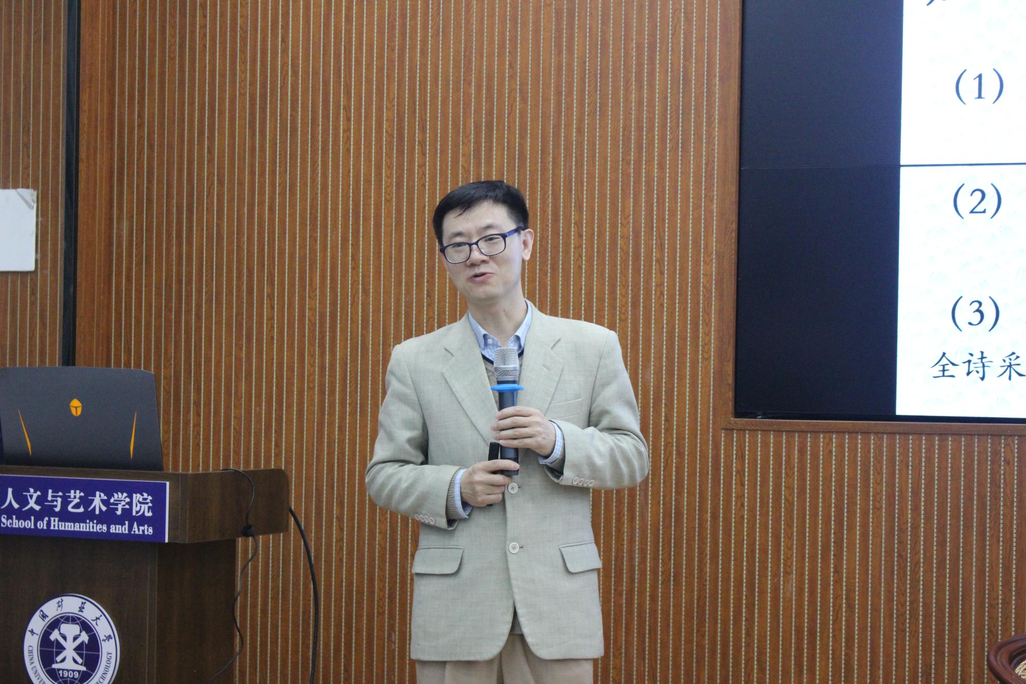 于文科楼A111会议室举办“歌词创作与海外传播”讲座。本次讲座由副院长刘振主持,西安交通大学外国语学院教授金中主讲,各系师生积极参与。