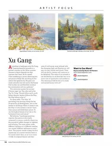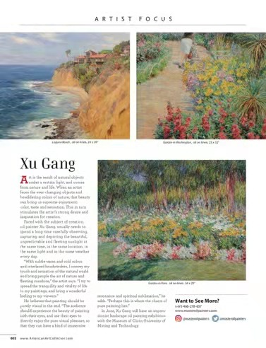 近日,美术系徐刚教授的风景油画作品《Garden in Paris》、《Garden in Washington》及《Laguna beach》等,先后发表于美国国家核心期刊《AMERICAN ART COLLECTOR 》的第五期与第七期,产生了较为广泛的社会影响,凸显了我校美术教师的深厚功力。