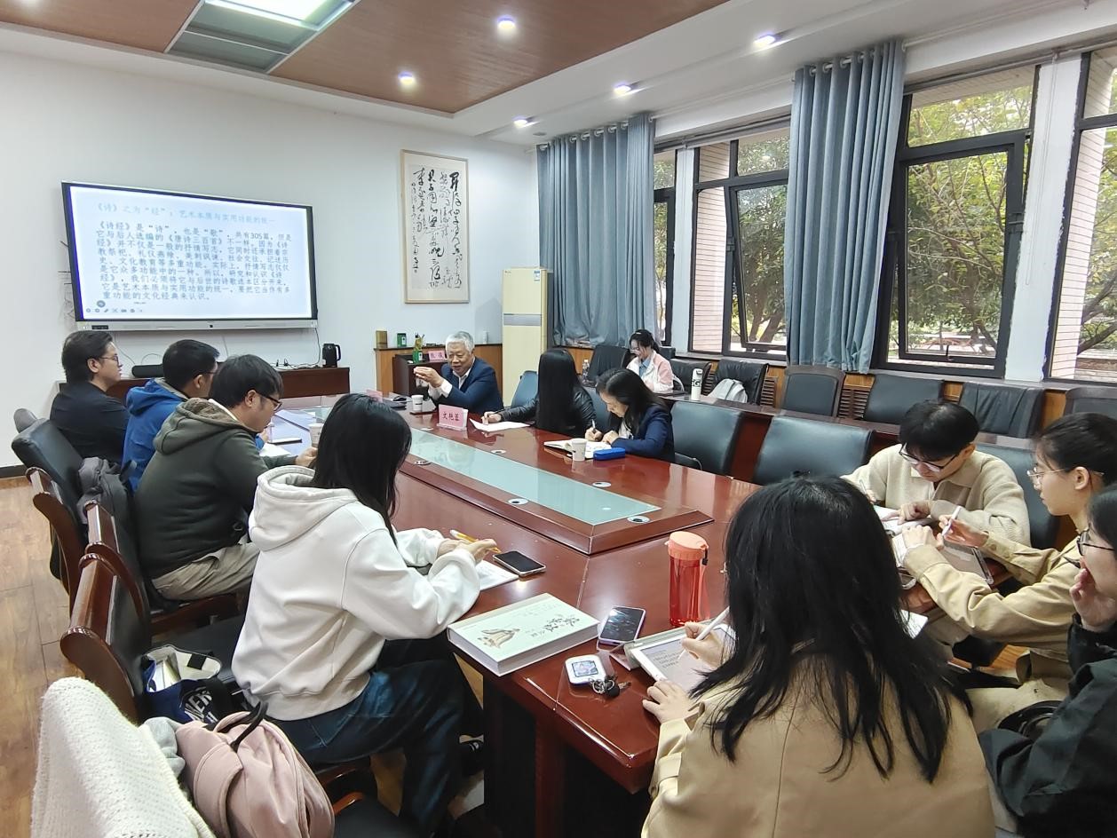 教授文艳蓉主持,刘振副院长、闫续瑞、冯仰操、栗山雅央等教师及古代文学硕士研究生参加。