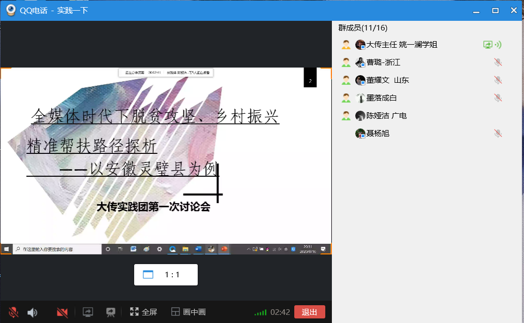 大学生传媒中心暑期实践团开展了“全媒体时代下脱贫攻坚、乡村振兴精准帮扶路径探析”第一次线上讨论会,会议由姚一澜主持。